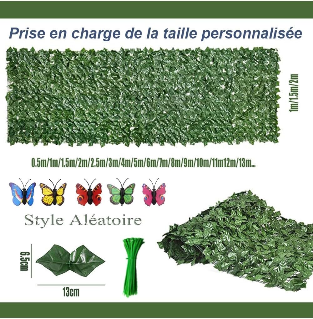 【Avantage Comparatif】 : Clôture De Jardin De Feuilles Artificielles 0.5x2m/1.64 x 6.56ft,par rapport aux produits du marché, notre brise vue haie artificielle ne nécessite pas d’assemblage. Après avoir reçu le colis, il vous suffit de le fixer dans la position d’intimité que vous devez couvrir avec les attaches de câble fournies, puis d’installer la décoration papillon incluse juste au-dessus.