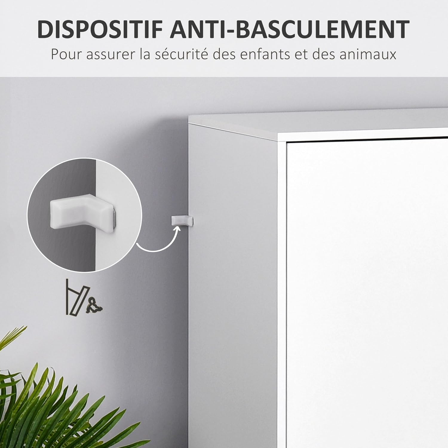 QUALITÉ SUPÉRIEURE : Pieds en bois de pin, structure haute en panneaux de particules classe E1 pour durabilité optimale. Revêtement mélaminé pratique et facile à entretenir. Dispositif anti-basculement de cette armoire chambre adulte pour sécurité