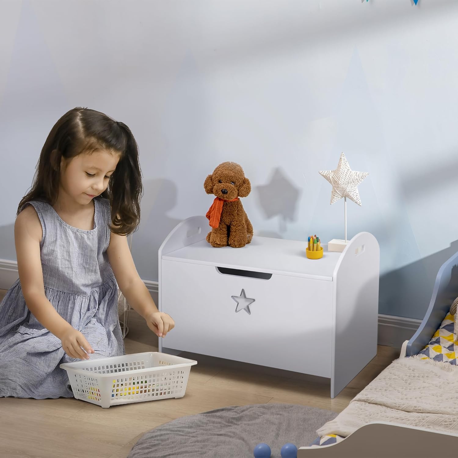 Style contemporain et élégant pour une parfaite intégration dans l’espace intérieur de votre choix : chambre, salon, salle de jeu, entrée, etc… Grande capacité de rangement, idéal pour les jouets, vêtements, coussins et autres objets La charnière peut être verrouillée pour empêcher le couvercle de tomber lorsqu’il est ouvert Structure robuste en MDF qui conforme à la classe E1 pour un usage pérenne Equipé de 2 poignées latérales, déplacement facile si besoin Entretien simple à l’aide d’un chiffon humide Montage facile à l’aide du manuel d’assemblage illustré fourni