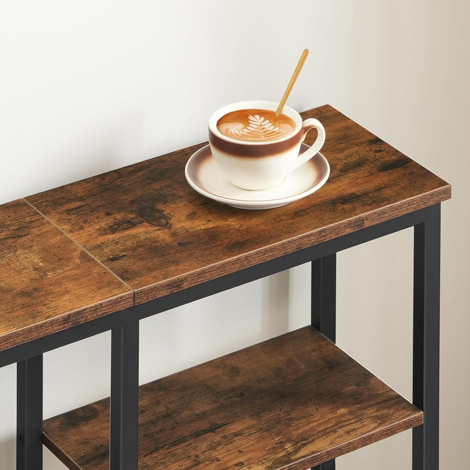 Robuste et durable : Fabriquée en panneaux d’aggloméré et en métal de haute qualité, cette table console est stable et durable. Équipée des dispositifs d’anti-basculement et des pieds réglables, elle peut rester stable et protéger votre plancher des rayures