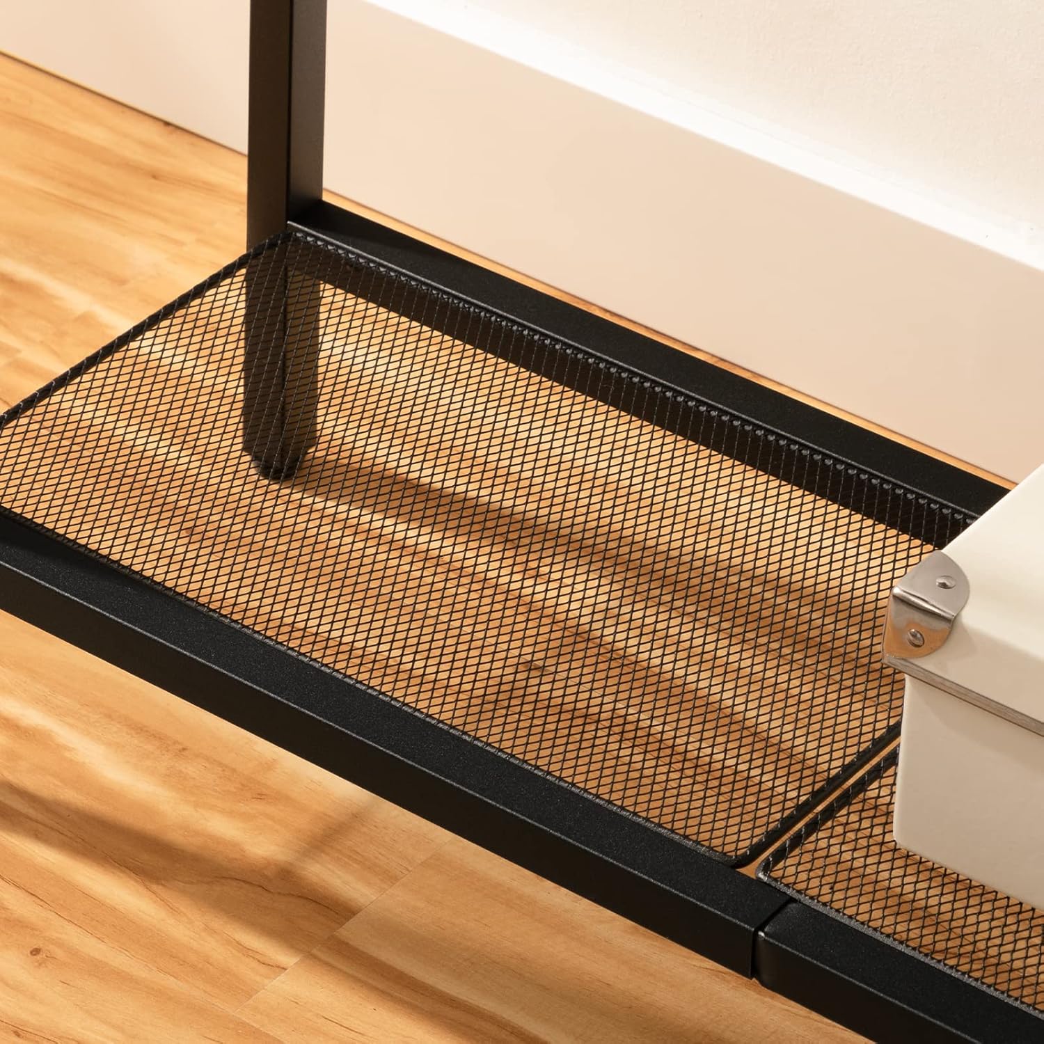 Bons matériaux, plus solides : Le panneau supérieur est en panneaux de particules de haute qualité, soutenu par un cadre en métal, combiné avec la grille finement ci-dessous, le support supérieur peut atteindre 20 kg et la grille 10 kg. Les pieds réglables permettent de maintenir l’équilibre sur différentes surfaces, protégeant vos sols ou tapis des rayures