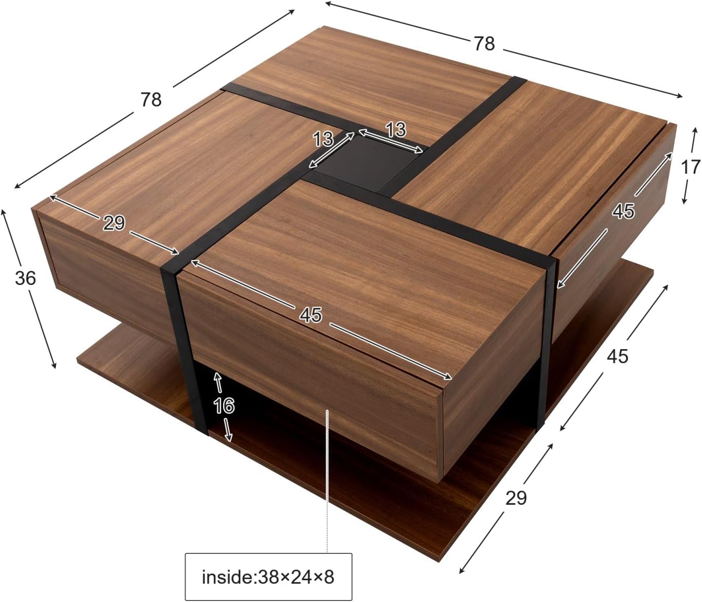 Design carré élégant souligne l’esthétique de la pièce : avec ses proportions carrées précises et gracieuses, cette table basse apporte harmonie et équilibre dans chaque détail, ce qui améliore instantanément le style général et l’esthétique de la pièce, qu’elle soit placée dans le salon, le bureau ou dans l’espace de loisirs.