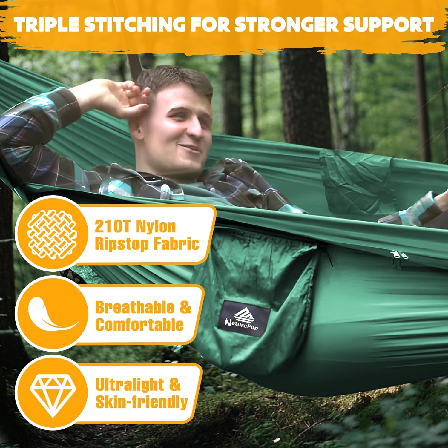 MAILLE ANTI MOUSTIQUE DURABLE – Il est également équipé d’un filet anti-insectes qui empêchera même les plus petits parasites de perturber votre repos. Le filet à insectes contient 2,100 trous par pouce carré, donc qu’il y ait des moustiques, pas d’ums, ou des puces, vous pouvez dormir tranquille en sachant que la moustiquaire NatureFun vous protégera… Quand les insectes ne sont pas un problème, vous pouvez simplement retourner le moustiquaire et l’utiliser comme un hamac régulier !