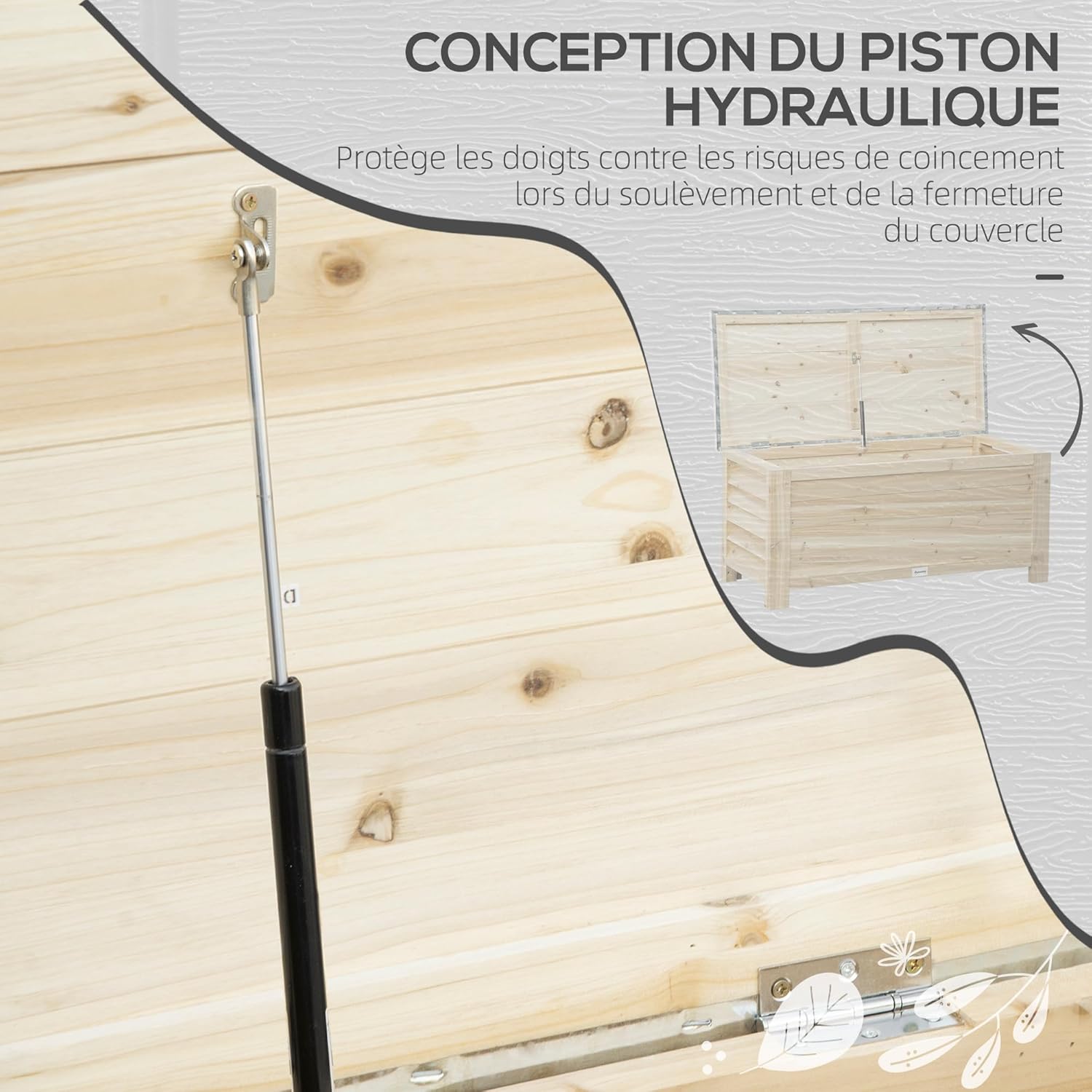 PRATIQUE ET FACILE À UTILISER : Le couvercle est en métal galvanisé pour mieux résister à l’environnement extérieur et protéger son contenu de l’humidité – Équipé de vérins pour faciliter l’ouverture et éviter que le couvercle ne se referme violemment par erreur.