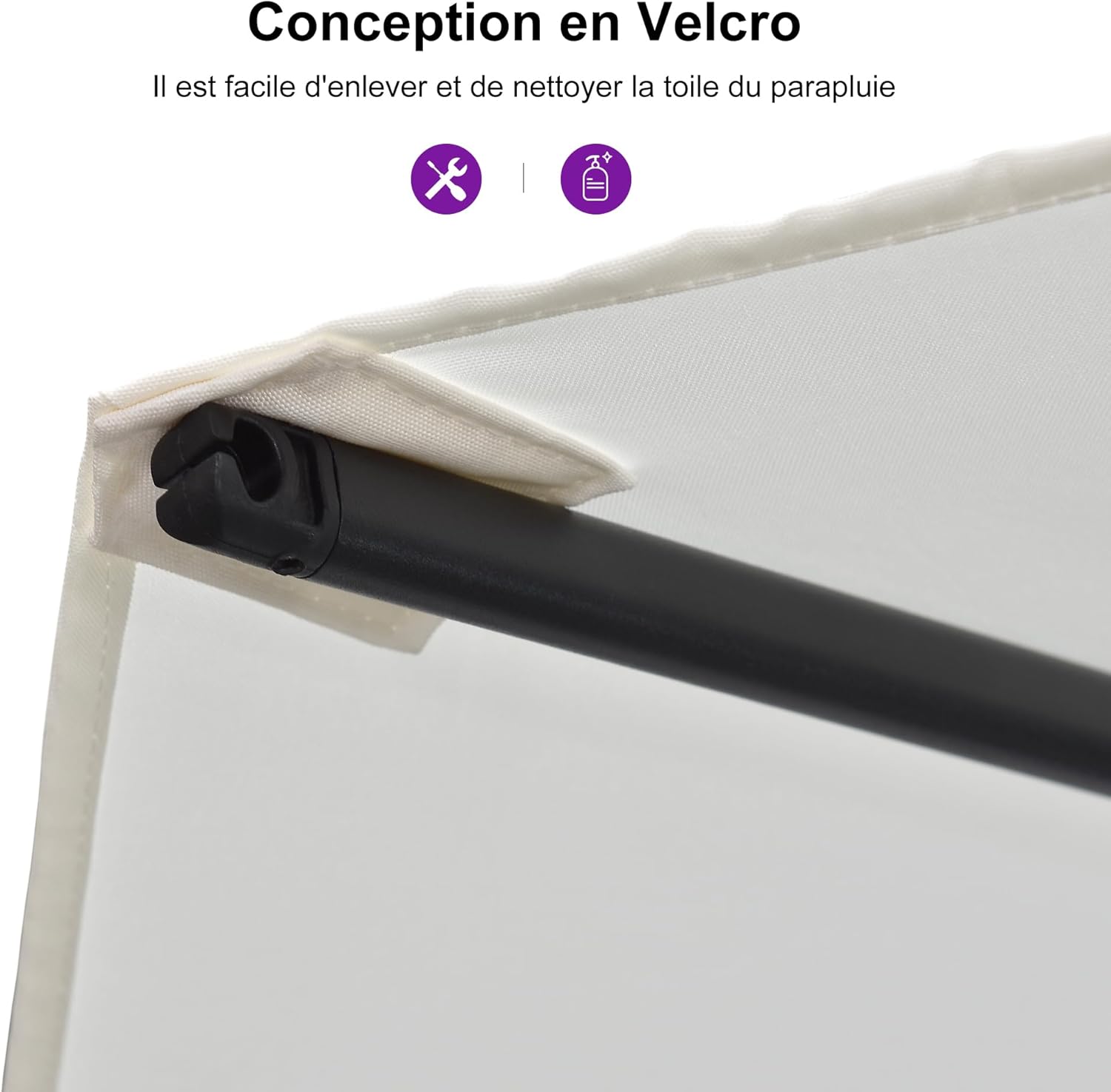 Base incluse : Elle est dotée d’une pied de parasol capable de supporter un poids maximum de 31 kg une fois remplie. Ce parasol est un choix idéal pour les terrasses, les jardins, les balcons et autres lieux extérieurs.