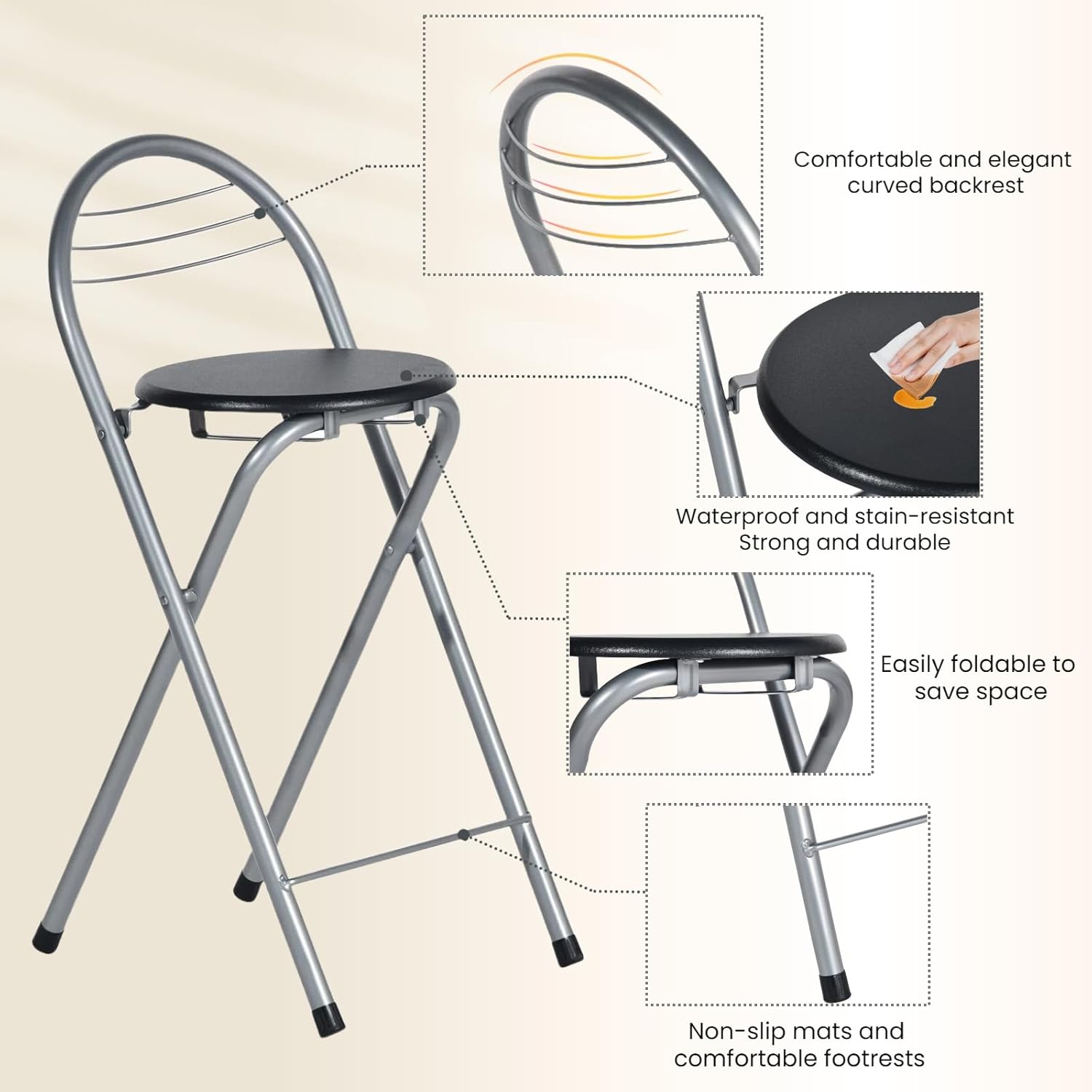 La conception pliante rend le tabouret de bar portable, peut être facilement rangé même dans de petits espaces, aucune installation requise, il suffit de le déplier et de l’utiliser
