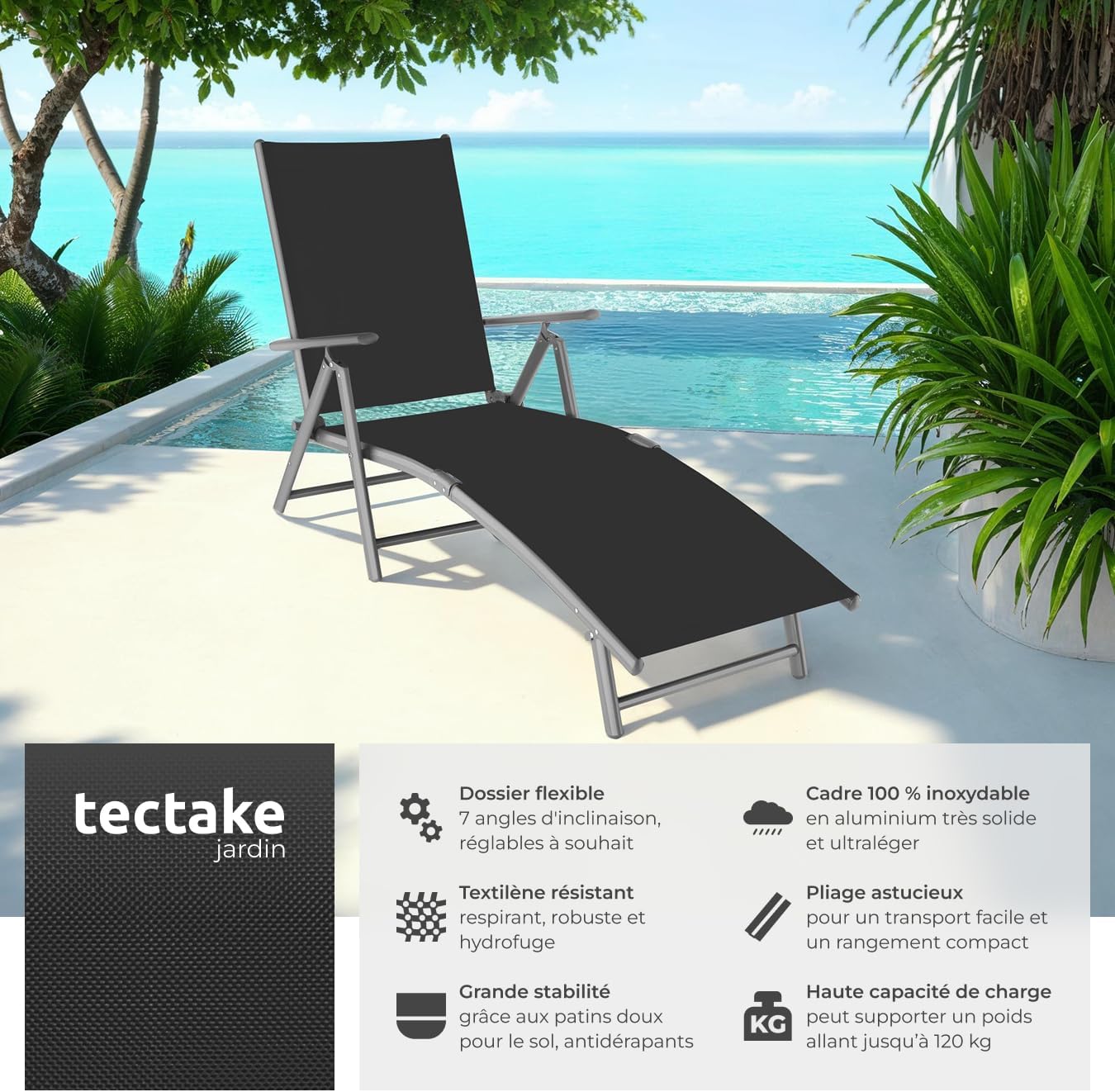 CONFORT SUPÉRIEUR AVEC 7 INCLINAISONS: Découvrez le summum du confort avec la chaise longue relax MARISOL tectake. Avec ses 7 degrés d’inclinaison, il s’adapte parfaitement à vos moments de relaxation. Que vous lisiez un livre ou profitiez du soleil dans votre jardin, ce bain de soleil jardin extérieur offre une expérience de détente inégalée. Sa conception ergonomique assure une assise ultra confortable, vous invitant à des heures de repos bien mérité.