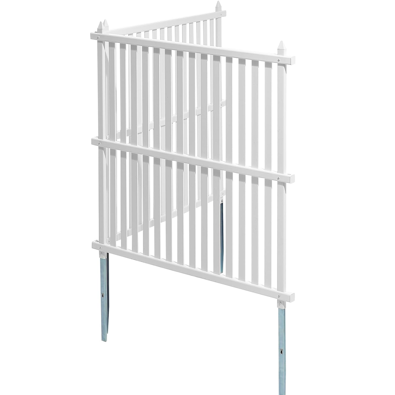 Esthétique et pratique : notre clôture de jardin est fabriquée à partir de PVC de qualité supérieure au lieu de fonte, elle est plus résistante à l’eau et à la corrosion. La surface lisse résiste à la poussière et aux taches, tandis que la couleur blanche simple complète n’importe quel décor. Pour plus de praticité, les pieds en métal ont remplacé ceux en plastique, améliorant ainsi la robustesse globale. Les capuchons de protection en forme de parapluie réduisent l’accumulation d’eau.