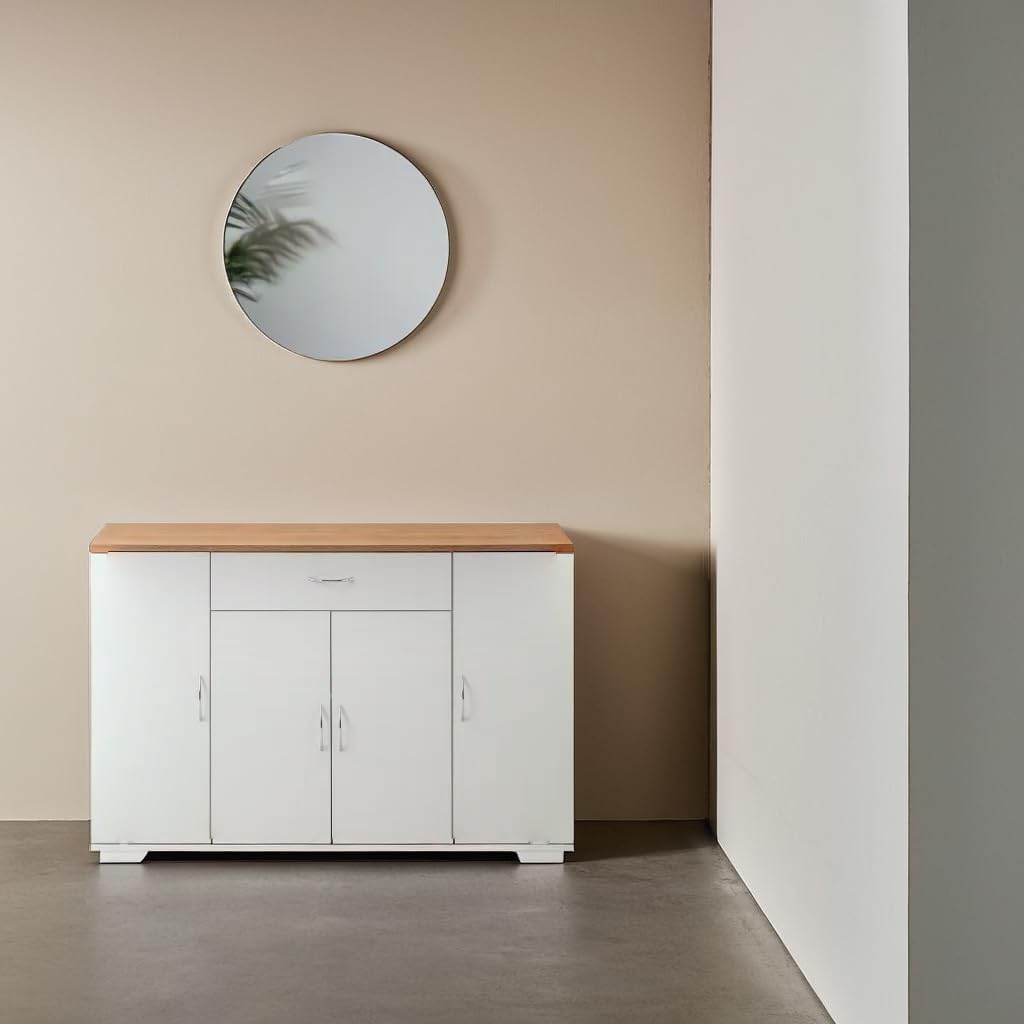 Polyvalence : un design multifonctionnel qui combine des tiroirs et des armoires, adapté pour stocker divers objets, des fournitures de bureau aux décorations de maison.