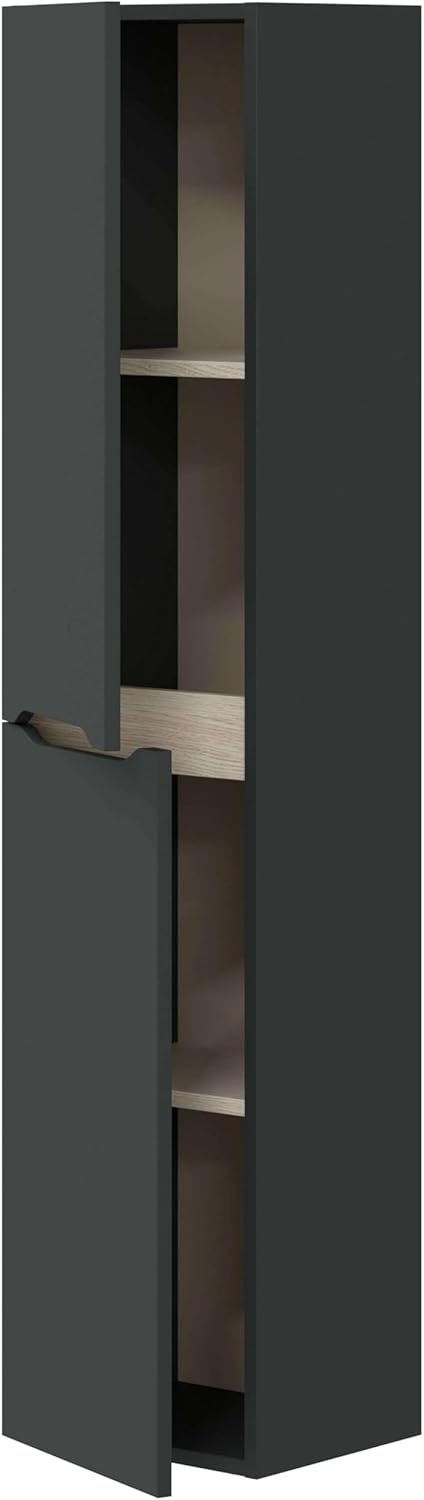 Donnez un nouveau souffle à votre salle de bain avec cette colonne suspendue Lotto à deux portes, dotée de 2 étagères réglables en hauteur et d’une étagère centrale fixe, pour garder l’ordre dans votre salle de bain ou vos toilettes. Grâce à la finition de ses couleurs, en gris anthracite et chêne, vous pourrez donner cette ambiance chaleureuse et moderne à votre salle de bain