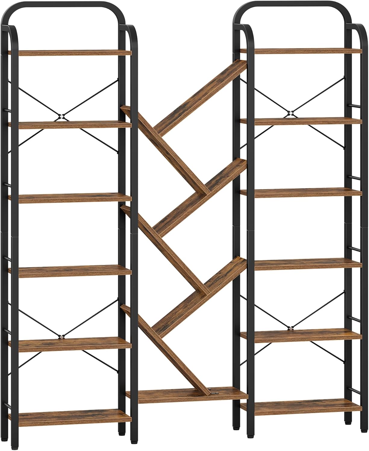 Stable et Sûre : Cette bibliotheque etagere rangement est fabriquée en panneaux de particules avec un cadre en acier et renforcée par des barres de soutien en forme de X à l’arrière pour plus de stabilité et de sécurité. Huit patins réglables assurent l’équilibre de la bibliothèque, et un dispositif anti-basculement l’empêche de se renverser, créant ainsi un environnement domestique sûr pour vous