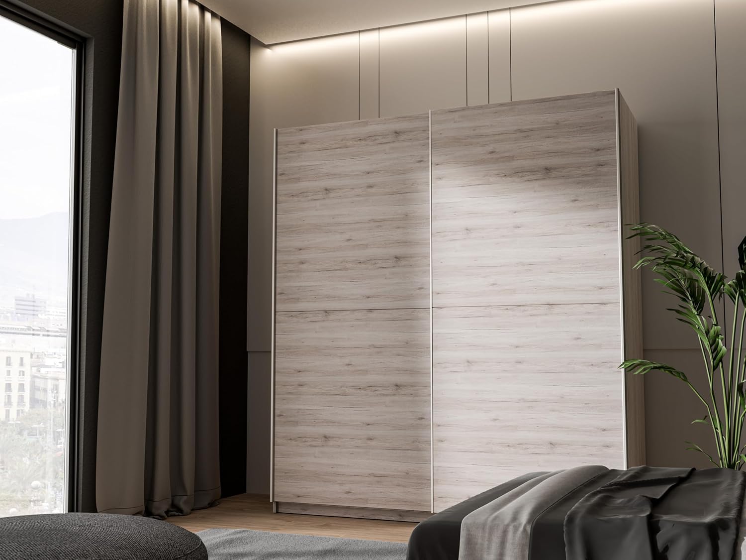 Une armoire simple aux couleurs modernes allie esthétique et confort. Il s’adapte aussi bien dans une chambre que dans un couloir. Elle offre suffisamment d’espace pour un rangement confortable. Les portes coulissantes assurent une utilisation confortable et facile. L’armoire dans un beau décor en chêne sable clair avec grain de bois visible s’adapte à de nombreux intérieurs. Les poignées sont en métal de couleur aluminium. Deux étagères intérieures et deux tringles offrent suffisamment d’espace pour ranger les vêtements, la literie et d’autres objets. Charge maximale des étagères jusqu’à 10 kg. Charge maximale de la tringle à vêtements jusqu’à 15 kg. Montage mural nécessaire (ferrures Contenu de la livraison :