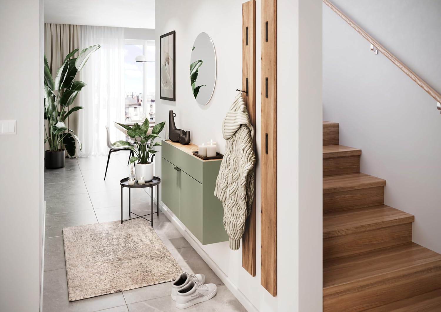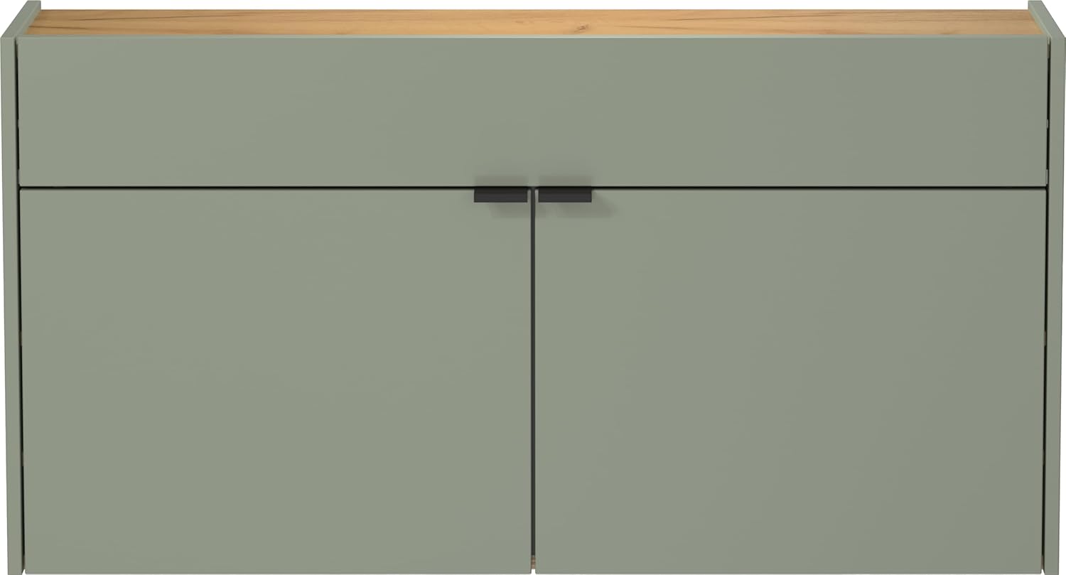 Germania Armoire Polyvalente Suspendue 1398-629 GW-Ameca, En Coloris Vert Taupe/chêne, Profondeur Faible, Optimale Dans Les Couloirs Étroits, 110 x 57 x 22 cm (l x h x p)
