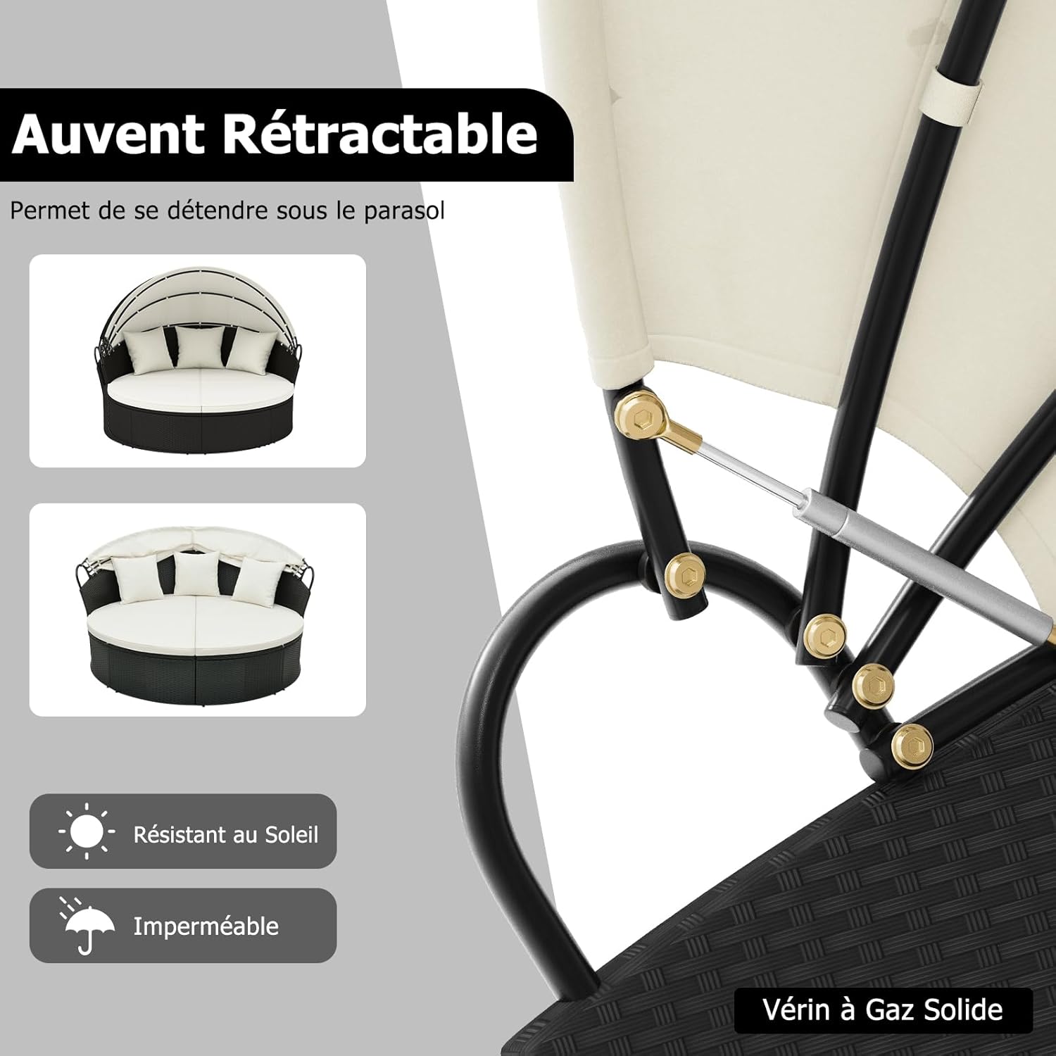 # 𝐀𝐮𝐯𝐞𝐧𝐭 𝐑é𝐭𝐫𝐚𝐜𝐭𝐚𝐛𝐥𝐞 # Doté d’un auvent imperméable rétractable, le canapé de jardin répondre à vos besoins différents. Vous pourrez le déployer pour vous protéger du soleil ou le replier pour profiter des bains de soleil.