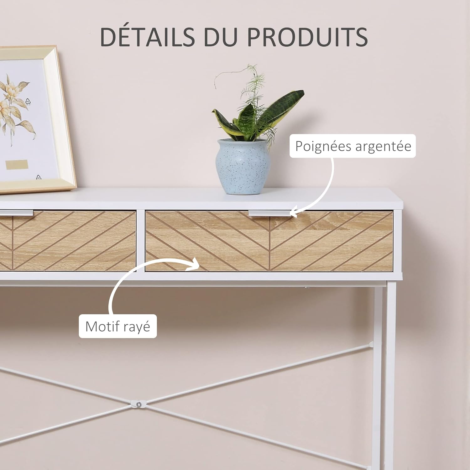 Console style industriel élégant avec façades de placards aspect bois de chêne sculpté motif à chevrons 2 tiroirs coulissants pour un rangement plus facile de vos clés, magazines, courriers, décorations, etc. Grand plateau vous offrant un bel espace supplémentaire de rangement et décoration Patins antidérapants, dispositif anti-basculement : stabilité optimale, aucun risque de rayure de votre sol Facile et rapide à monter : notice d’assemblage illustrée fournie
