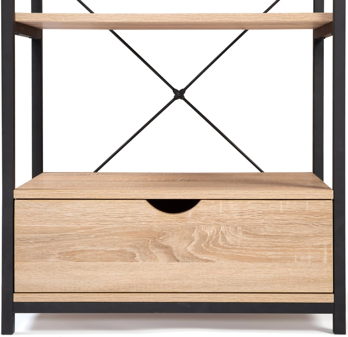 Descriptif de l’étagère 5 niveaux avec tiroir DETROIT design industrielDonnez une touche industrielle à votre intérieur grâce à notre étagère 5 niveaux avec tiroir design industriel DETROIT bois et métal noir.Son style moderne, contemporain et ses lignes sobres offriront à votre salon, bureau ou cuisine un esprit « factory » ! De quoi créer une ambiance ultra chaleureuse type loft, cosy et tendance ! Esthétique, cette jolie étagère bibliothèque trouvera idéalement sa place dans les intérieurs urbains et contemporains, mais aussi plus rustiques.Les 5 tablettes larges maxi capacité vous permettront de disposer élégamment vos livres, objets de décoration, et boîtes de rangement. Entreposez vos affaires sur plusieurs étages pour organiser votre rangement ! Son tiroir inférieur vous offre un espace de rangement fermé supplémentaire !La matière et la couleur des étagères en particules de bois (PB épaisseur 1,5 cm) lui confèrent une véritable authenticité.La structure du meuble, en métal noir (épaisseur des tubes 1,5 cm x 1,5 cm), lui assure solidité et robustesse. De jolis croisillons participent à l’esthétisme et à la stabilité de la structure.Conçue tout en hauteur, vous gagnerez de l’espace au sol dans votre pièce !Grâce à cette étagère fonctionnelle, vos objets de déco et petites plantes d’intérieur sont mis en valeur !Laissez vous séduire dès maintenant par notre étagère industrielle 5 niveaux avec tiroir à petit prix !Dimensions de l’étagère 5 niveaux DETROIT design industrielDimensions totales : Longueur 60 x largeur 30 x Hauteur 170 cmDimensions extérieures du tiroir : Longueur 55,5 cm x largeur 26,5 cm x Hauteur 16,5 cmDimensions intérieures du tiroir : Longueur 48 cm x largeur 23,5 cm x Hauteur 14 cmHauteur entre chaque étagère : 28 cmEpaisseur des planches : 1,5 cmRetrouvez l’ensemble de notre collection industrielle sur notre boutique en ligne !