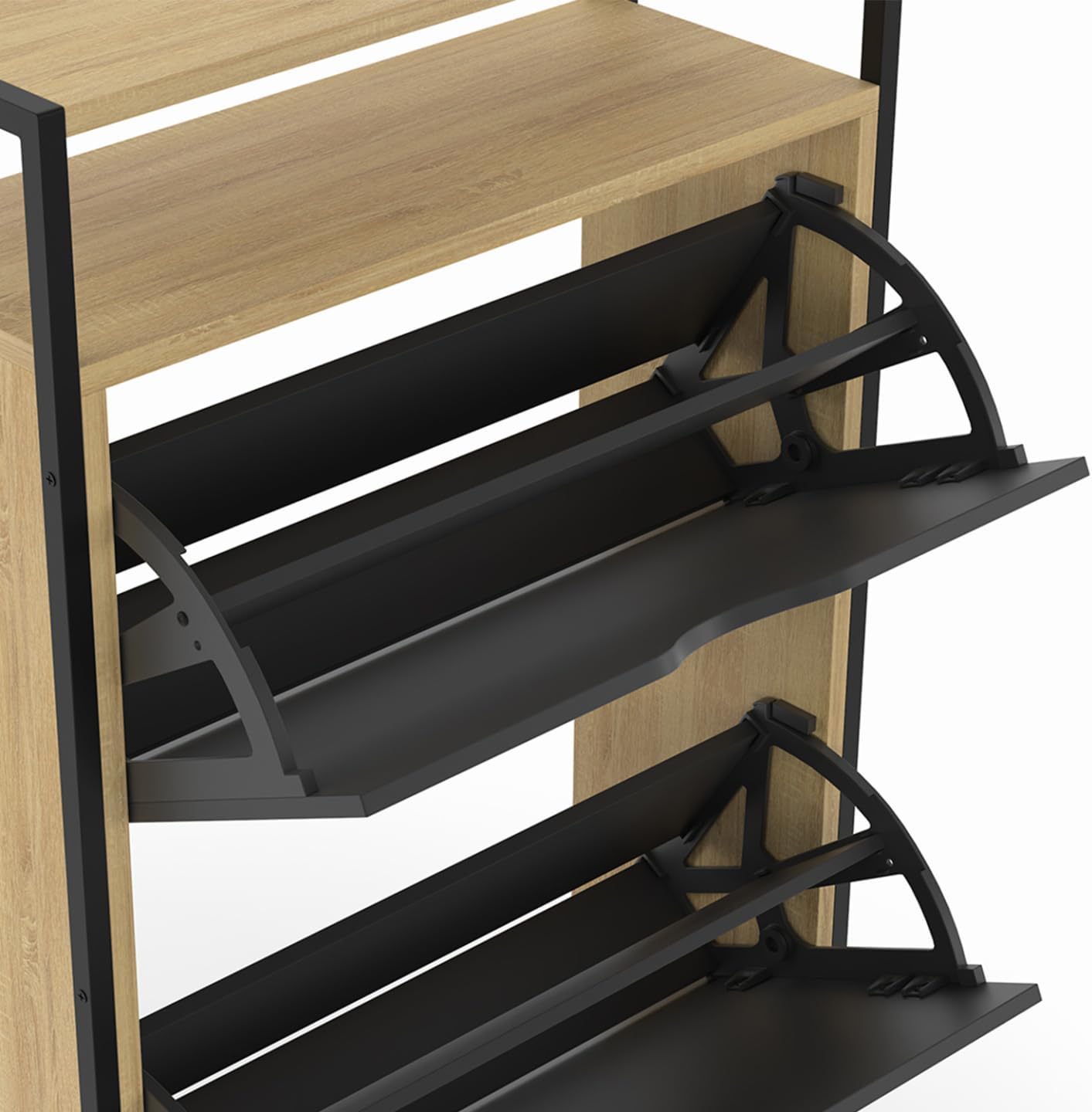 Contient jusqu’à 12 paires de chaussures. Structure en panneaux de particules de bois et métal