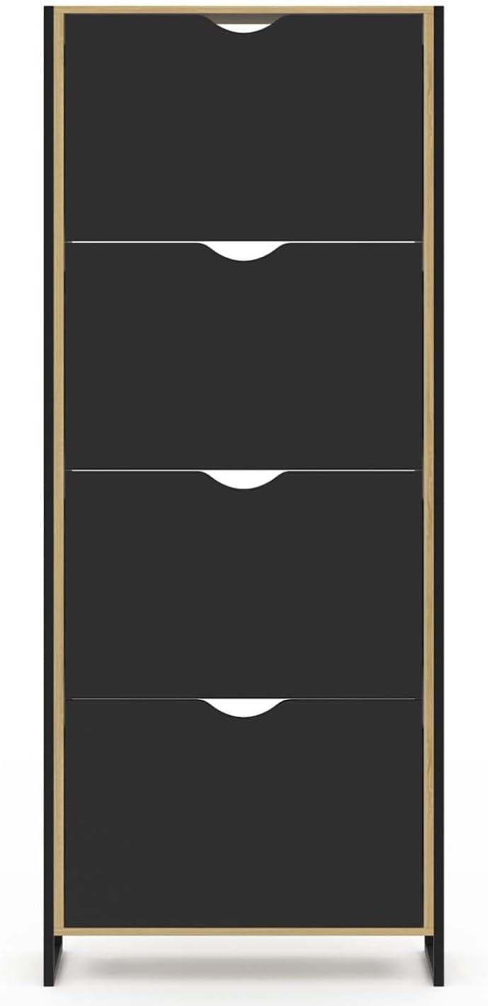 Contient jusqu’à 24 paires de chaussures. Structure en panneaux de particules de bois et métal