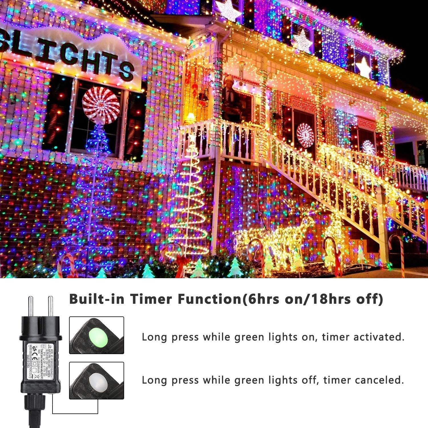 Guirlandes lumineuses: La guirlande lumineuse extérieure se compose de 100 LED d’une longueur totale de 13 m, chaque LED étant distante de 10 cm. Des guirlandes lumineuses à l’extérieur créeront une atmosphère d’Noël extrêmement intéressante.