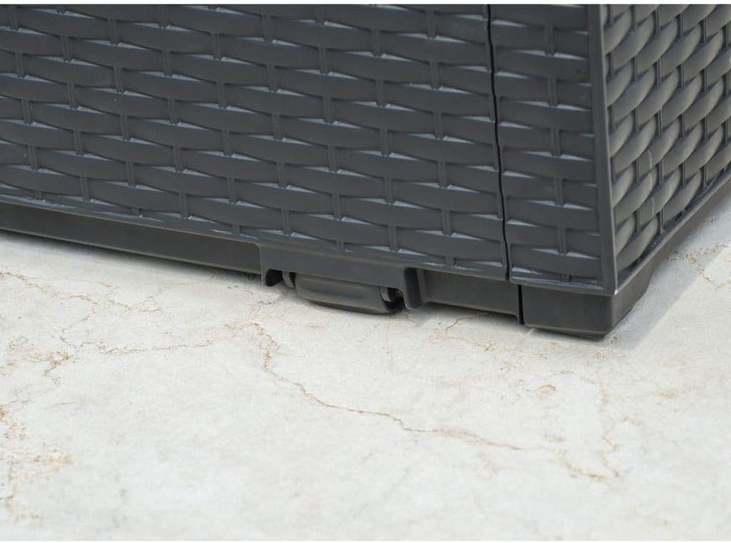 Le coffre de rangement extérieur Tropic est idéal pour ranger le matériel de jardin et pour accueillir confortablement deux adultes.