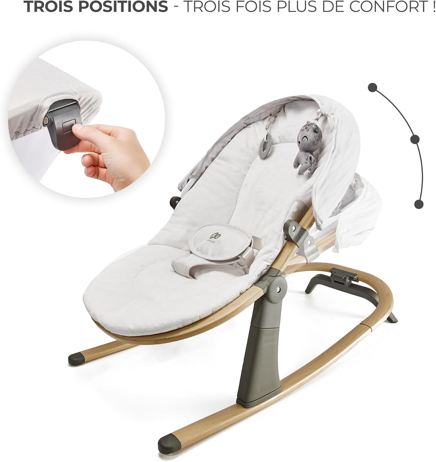 3 POSITIONS DE RÉGLAGE DU DOSSIER : la balancelle-transat ELSU est le choix idéal pour les nouveau-nés et les bébés jusqu’à 9 kg.