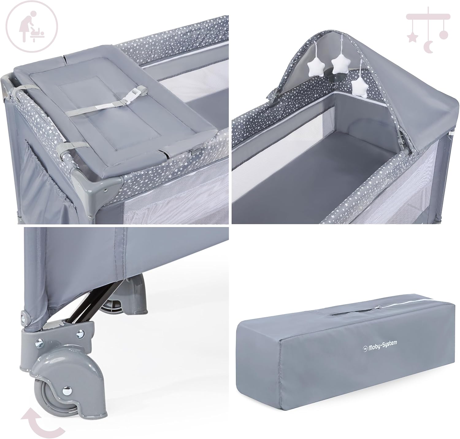2en1! Lit Parapluie & parc, Design moderne et couleur universelle qui s’adapte à tous les intérieurs.