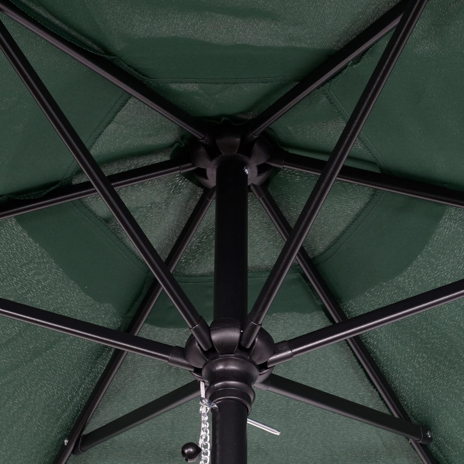 ● La structure en aluminium maintient le parasol droit, relié au toit du parasol par six baleines en acier.