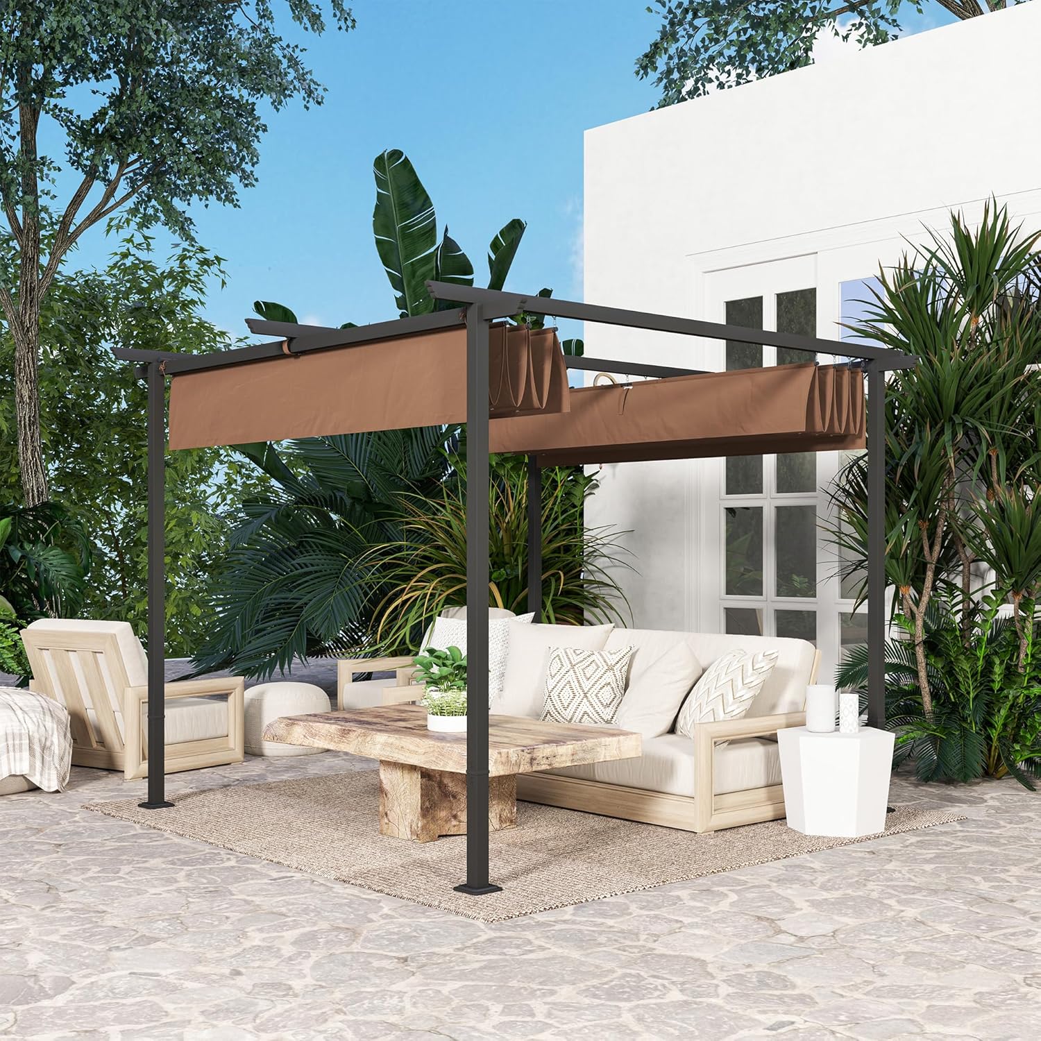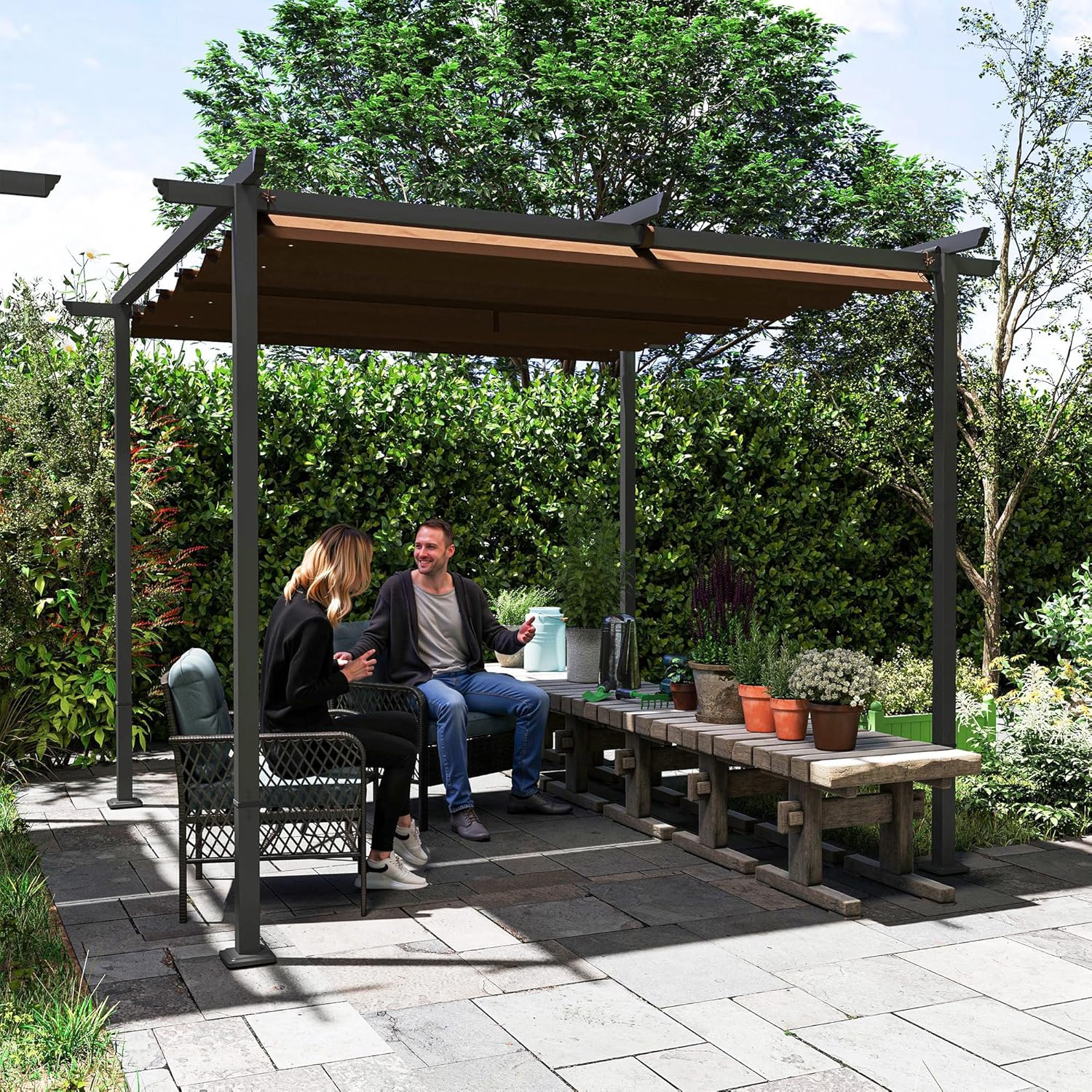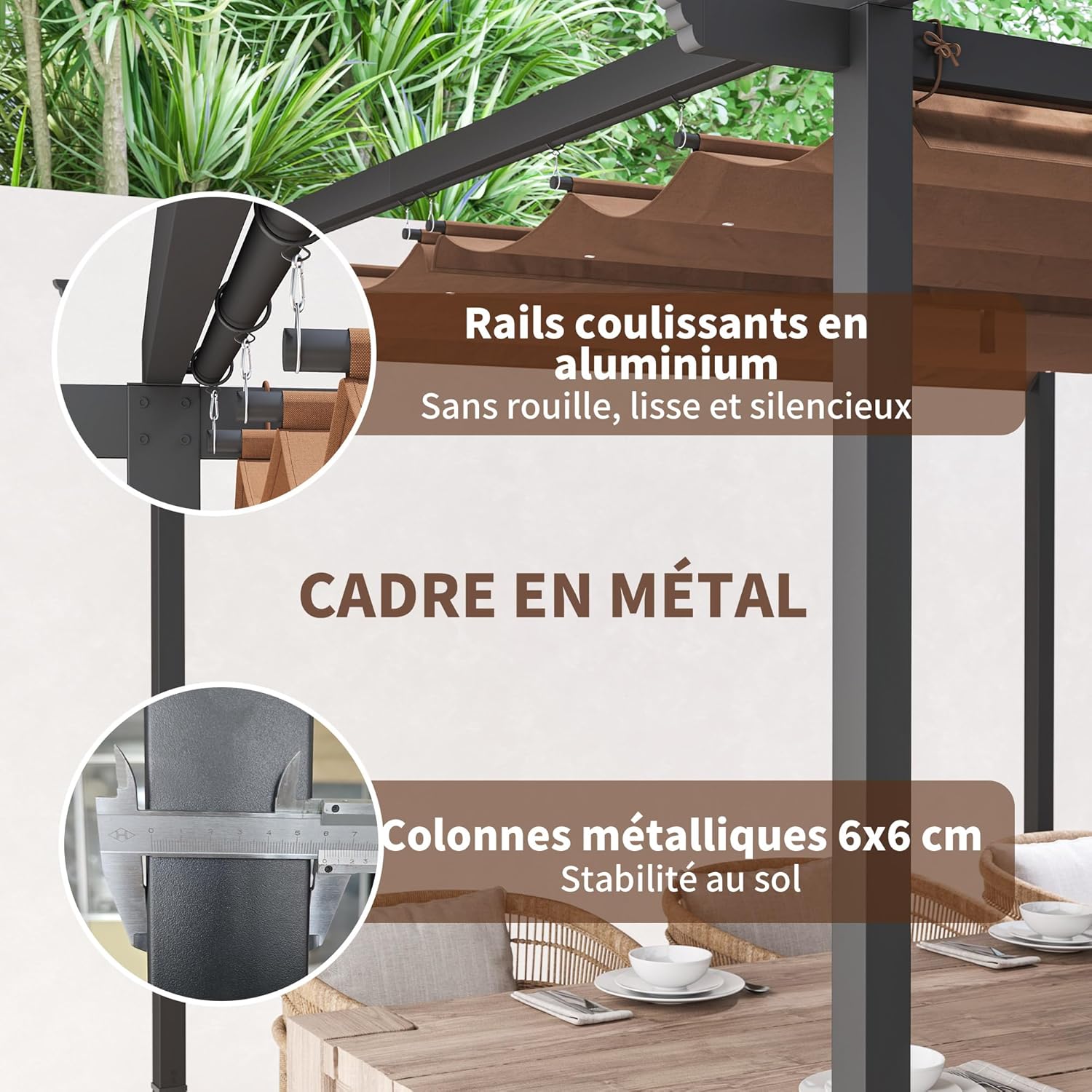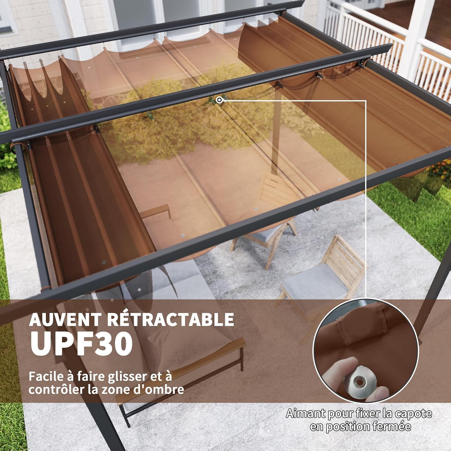 TOIT RÉTRACTABLE PRATIQUE : Ajustez facilement l’ombre ou la lumière grâce au toit rétractable de cette pergola de jardin, parfait pour profiter de chaque moment dehors