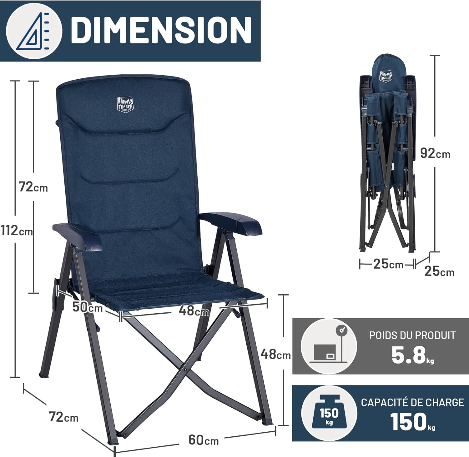 TIMBER RIDGE Chaise Pliante de camping Petite taille de rangement, en Aluminium Robuste à 4 positions réglables, idéale pour le camping, le jardin, le barbecue, le camping-car …
