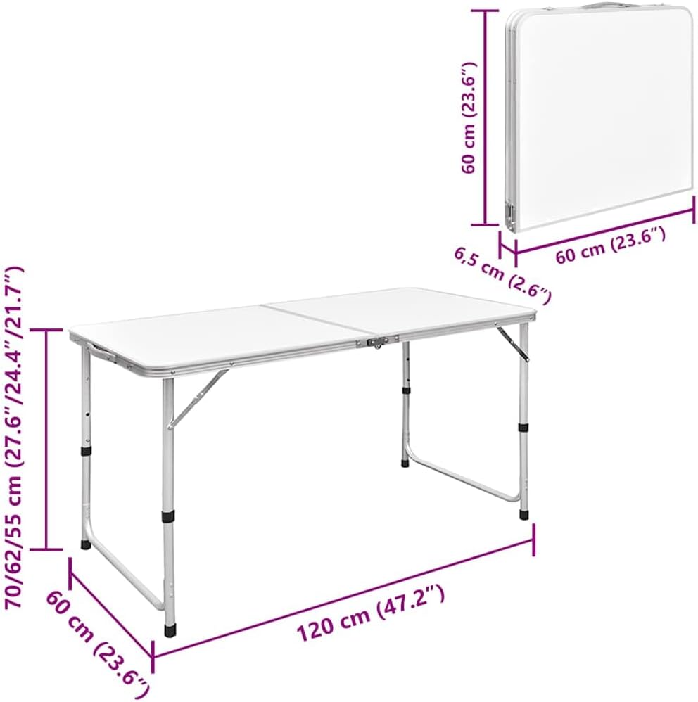Grâce à la poignée de transport pratique et à la hauteur réglable de la table, cet ensemble est parfait pour une utilisation dans les cuisines, sur les patios, dans les jardins, ou aux pique-niques et les voyages de camping