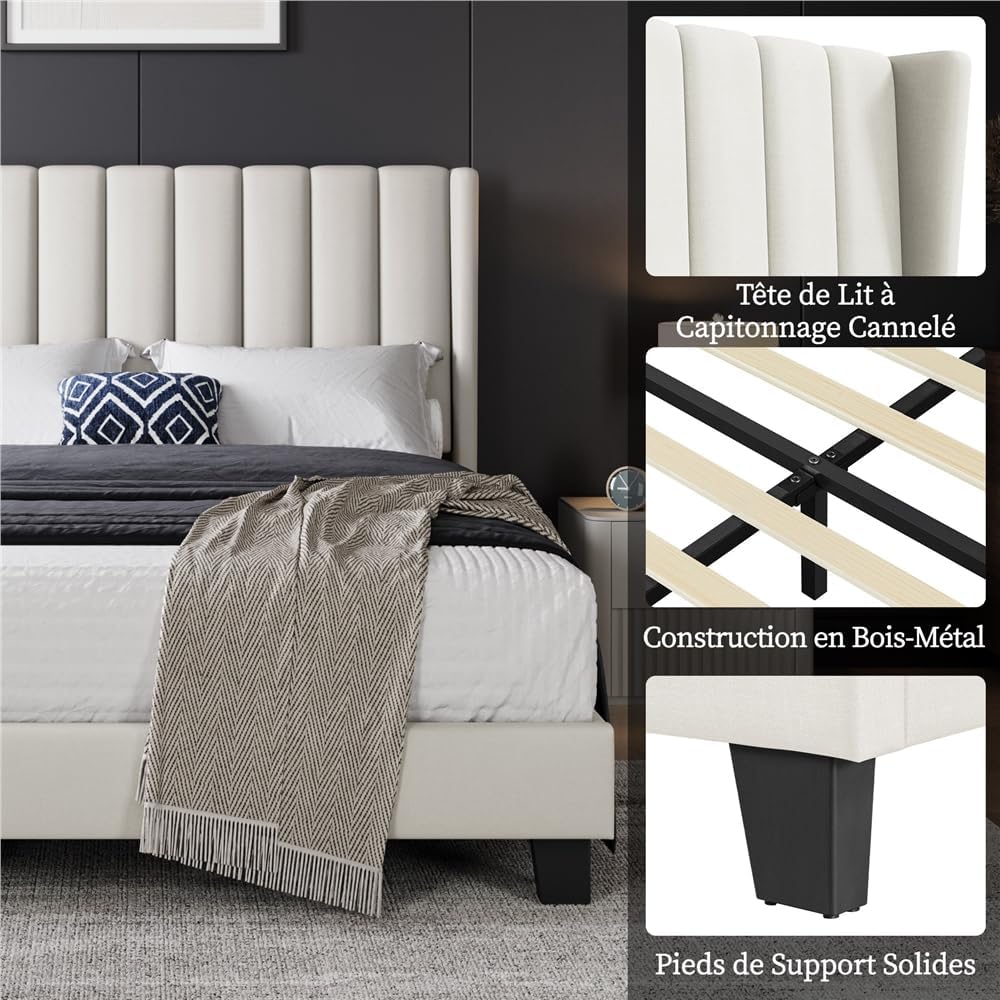 Tête de lit confortable et haute : la tête de lit haute avec son design en forme d’ailes est rembourrée de mousse haute densité et recouverte de tissu en lin doux. Il offre un dossier confortable pour lire ou regarder la télévision.