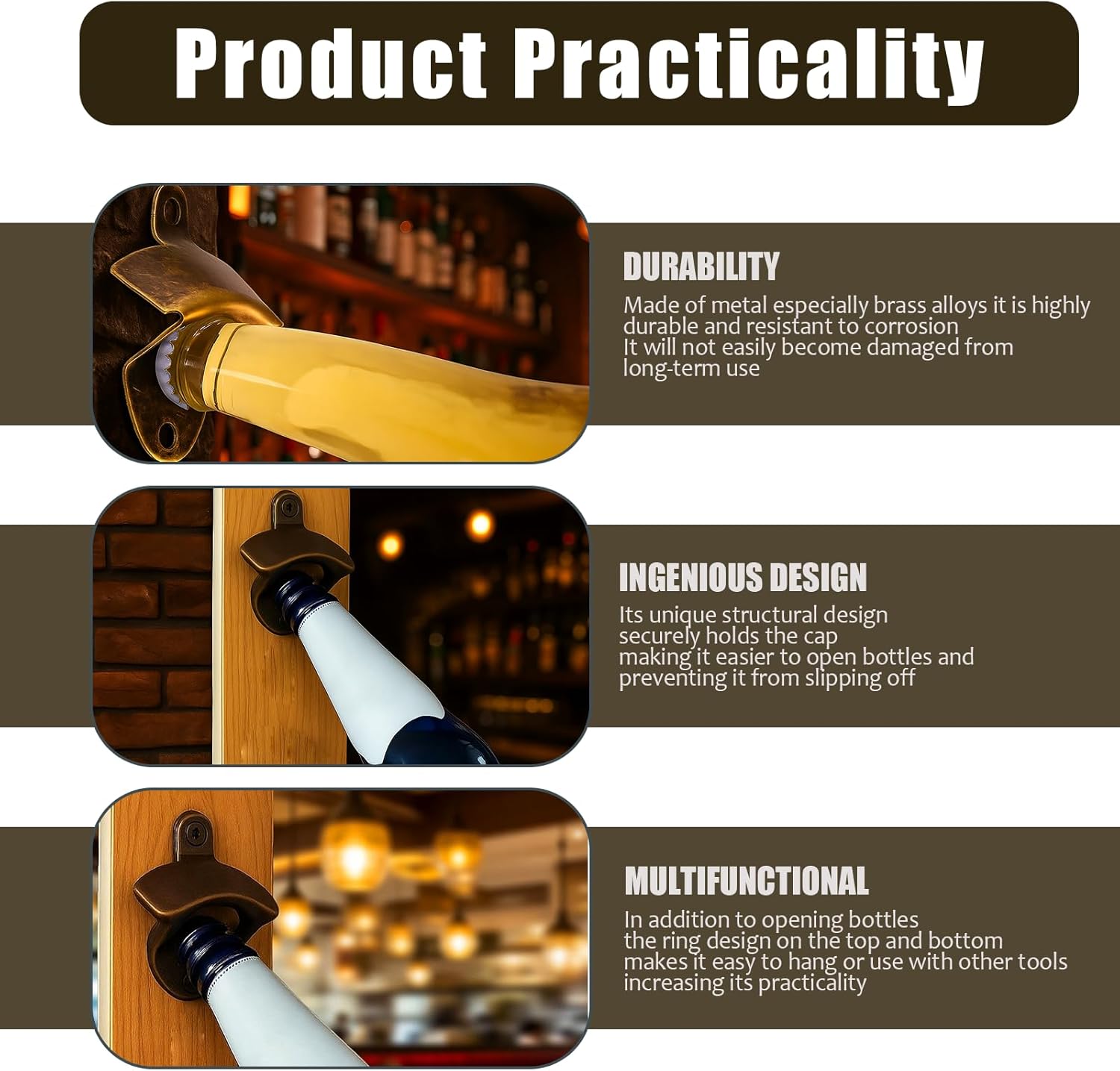 3 Pièces Décapsuleur Mural, Multifonction Vintage 2025 pas cher