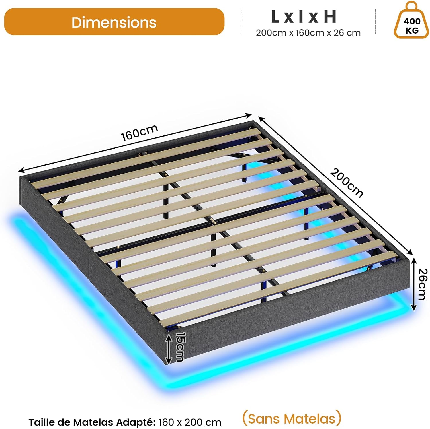 【Attention aux Détails】Nos conceptions minutieuses vous permettent de dire adieu aux grincements et aux frottements gênants. Notre lit flottant vous garantit un sommeil profond et réparateur sans distraction. Une fois bien assemblé, il vous suffit de poser le matelas sur ce lit 2 places avant de profiter d’un sommeil confortable. De plus, le cadre du lit 160×200 est recouvert de lin de qualité supérieure, ce qui lui confère un aspect luxueux et réduit le risque de blessures en cas de collision