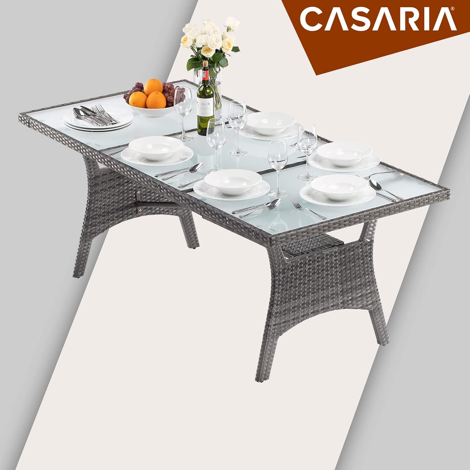 RÉSISTANT AUX INTEMPÉRIES ET ROBUSTE : Constitué d’une structure en acier et de polyrotin, cette table est résistante aux UV, facile à nettoyer et dotée d’une longue durée de vie. Les plateaux en verre de sécurité de 5 mm d’épaisseur sont amovibles et disposent de ventouses afin d’éviter qu’ils ne glissent.