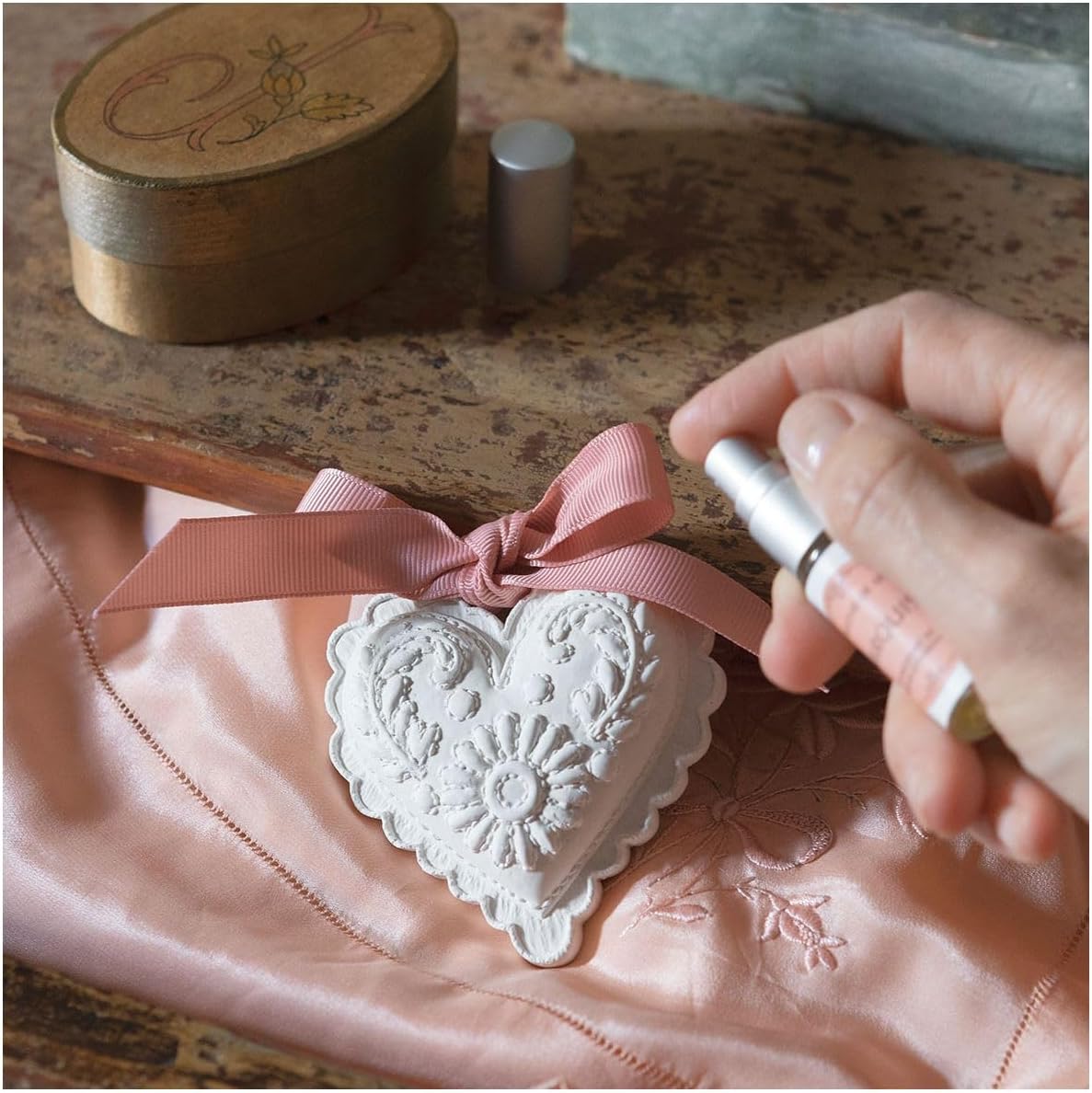 Hautement dosé en parfum, ce concentré de parfum réactive la senteur des décors en plâtre parfumé et des parfums d’armoire Mathilde M.