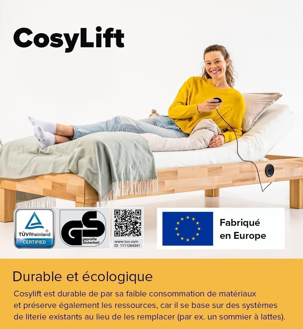 AJUSTEMENT ÉLECTRIQUE POUR TOUS LES LITS : Les CosyLifts s’adaptent à tous les types de lits et sont compatibles avec tous les matelas (ultraplats, ils sont imperceptibles sous le matelas)