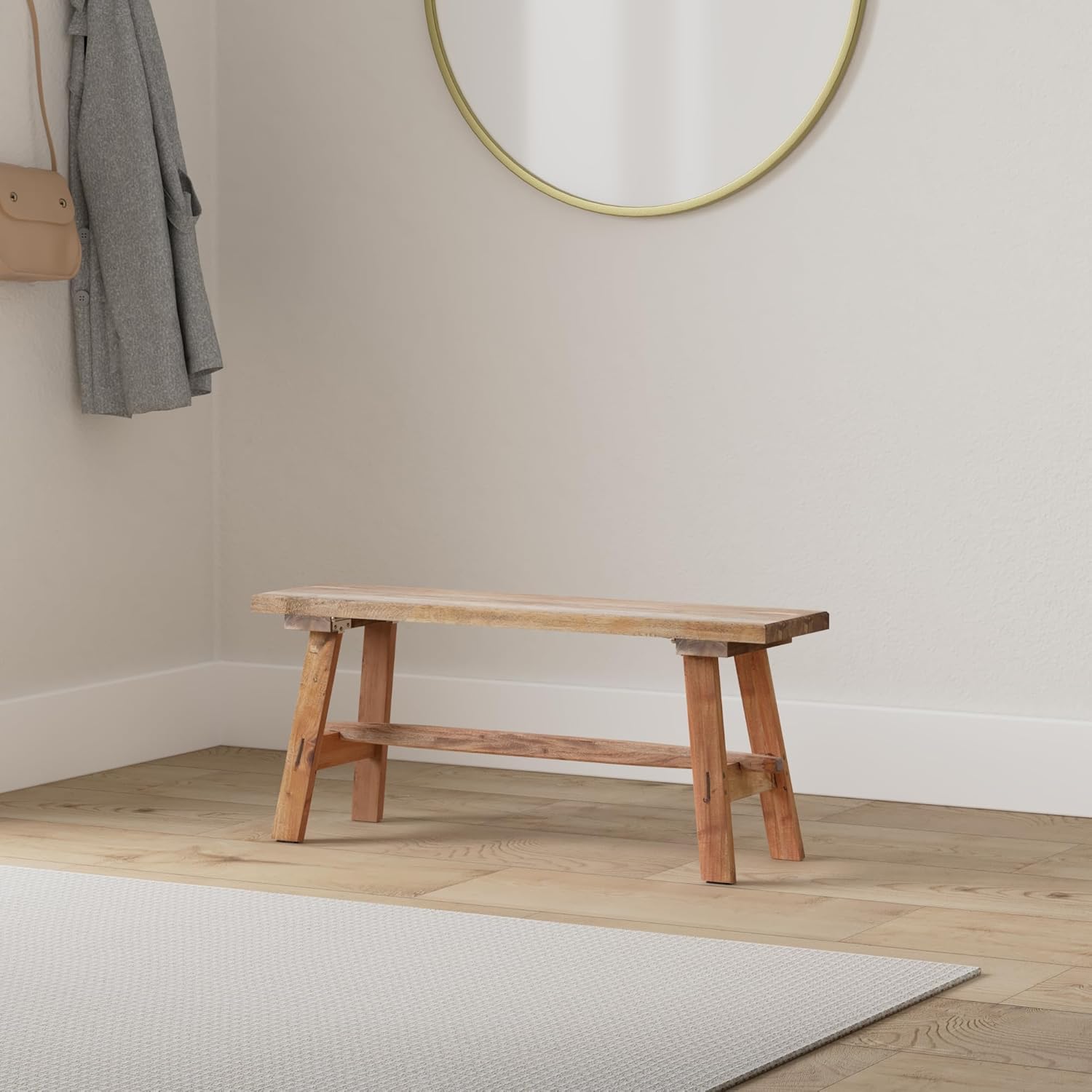 Notre petit banc en bois ANZIO dégage un caractère naturel pur, car il a été fabriqué en bois massif vintage. Afin de donner au banc la stabilité et la stabilité nécessaires, une entretoise en bois est fixée entre les pieds en bois. Si le banc n’est pas nécessaire, il peut être plié facilement en pliant les pieds pour économiser de l’espace.