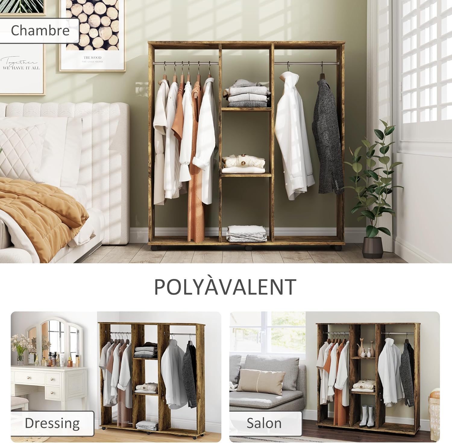 HOMCOM Armoire penderie Meuble de Rangement Mobile 6 2025 pas cher