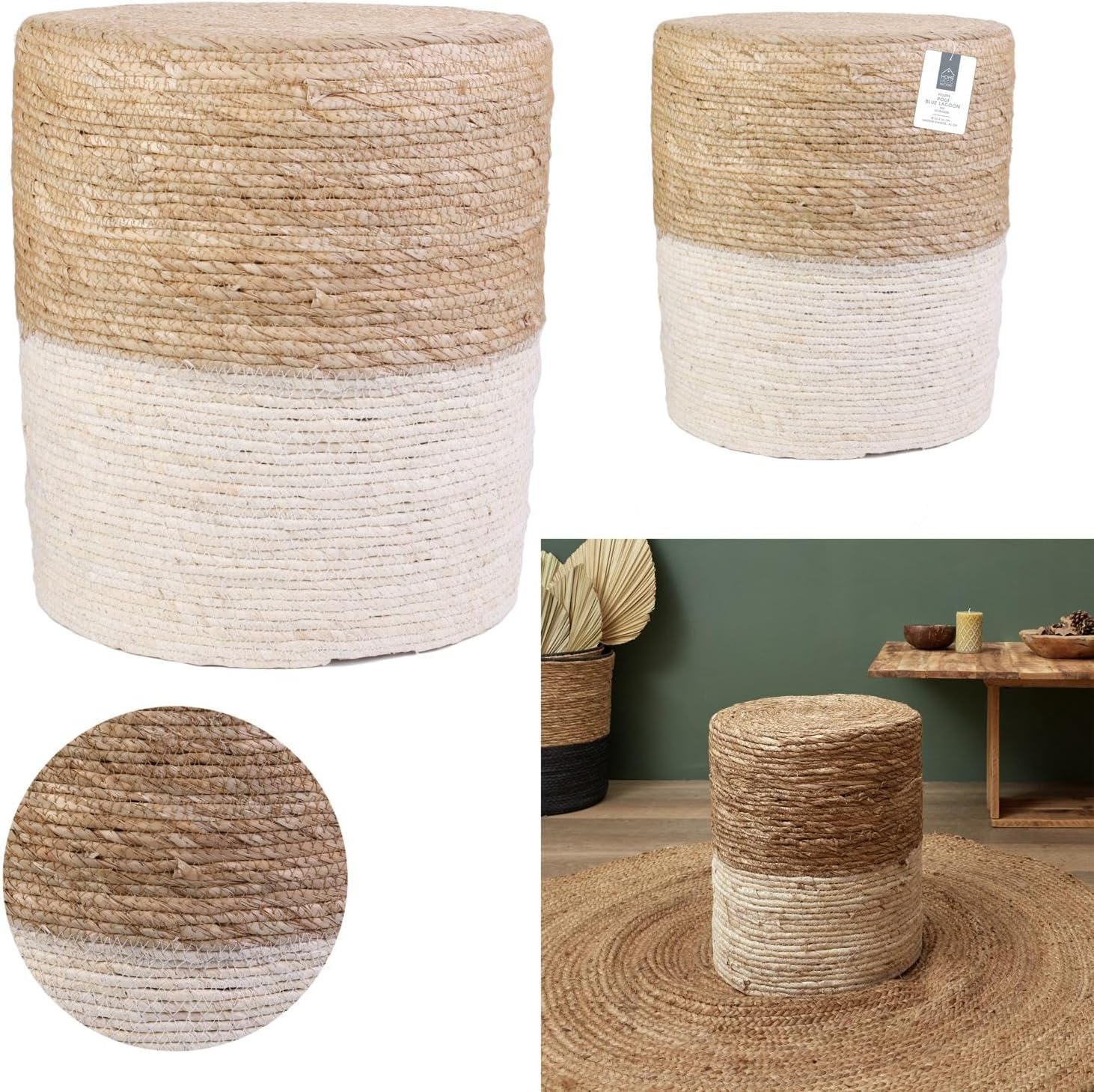 Tendance : Ce pouf, alliant style et fonctionnalité, s’aligne sur les tendances actuelles de décoration. Il s’intègre facilement dans un intérieur moderne, bohème ou scandinave, apportant une touche naturelle et apaisante à votre espace