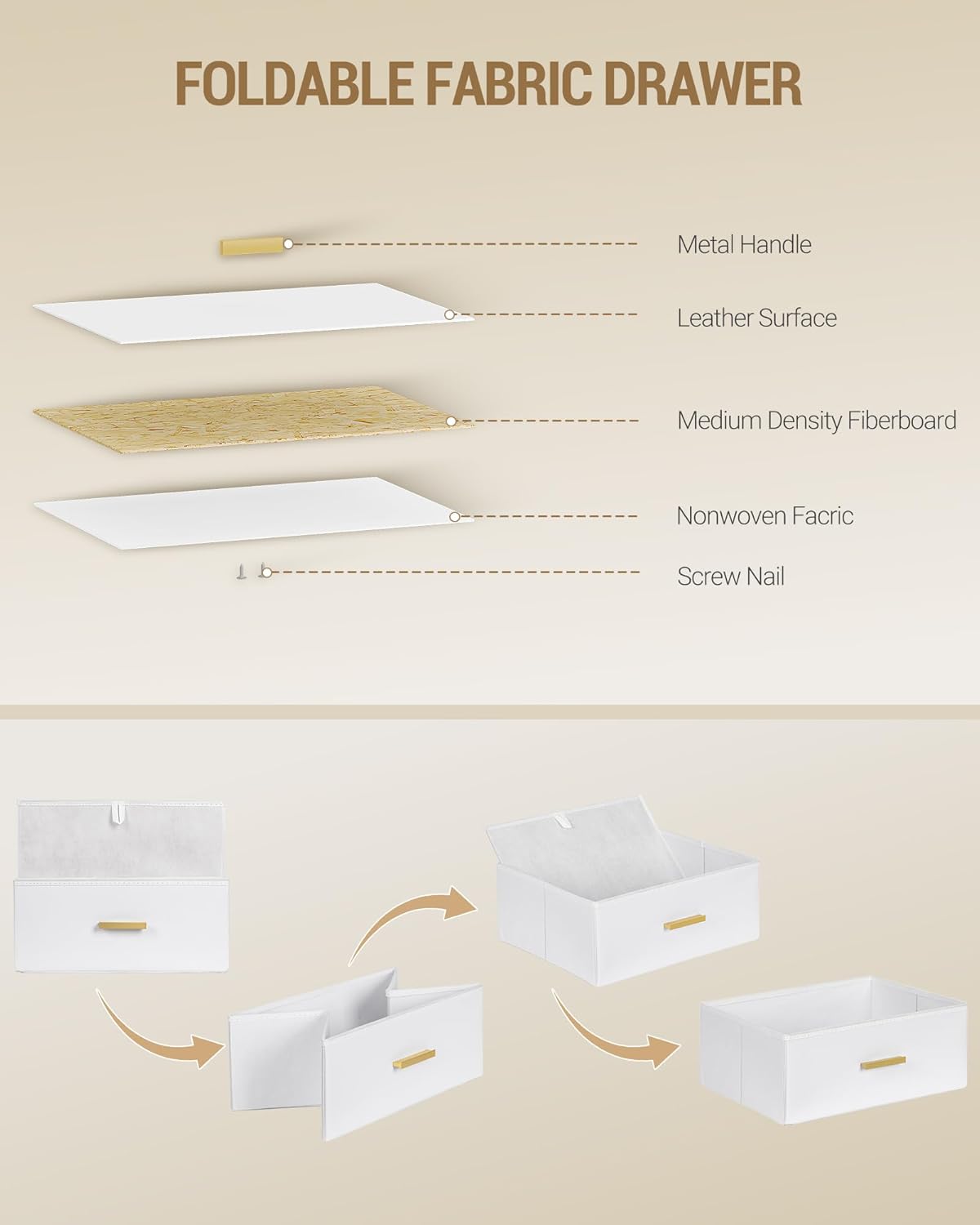 Avec 3 tiroirs spacieux en tissu, notre table de chevet offre un vaste espace de rangement pour tous vos effets personnels.