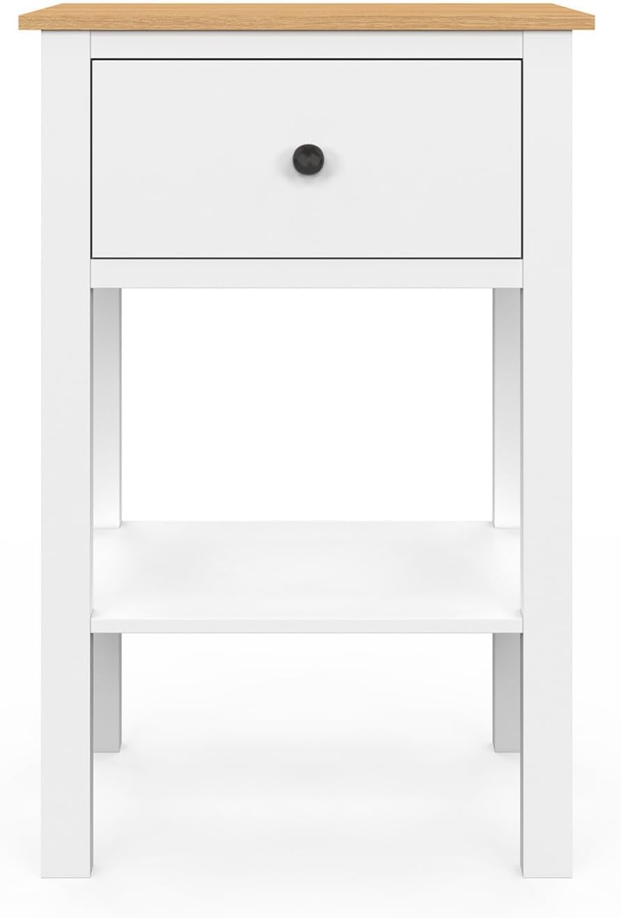 Ce lot de 2 tables de chevet blanc et plateau façon hêtre apporte une touche chic et moderne à votre chambre