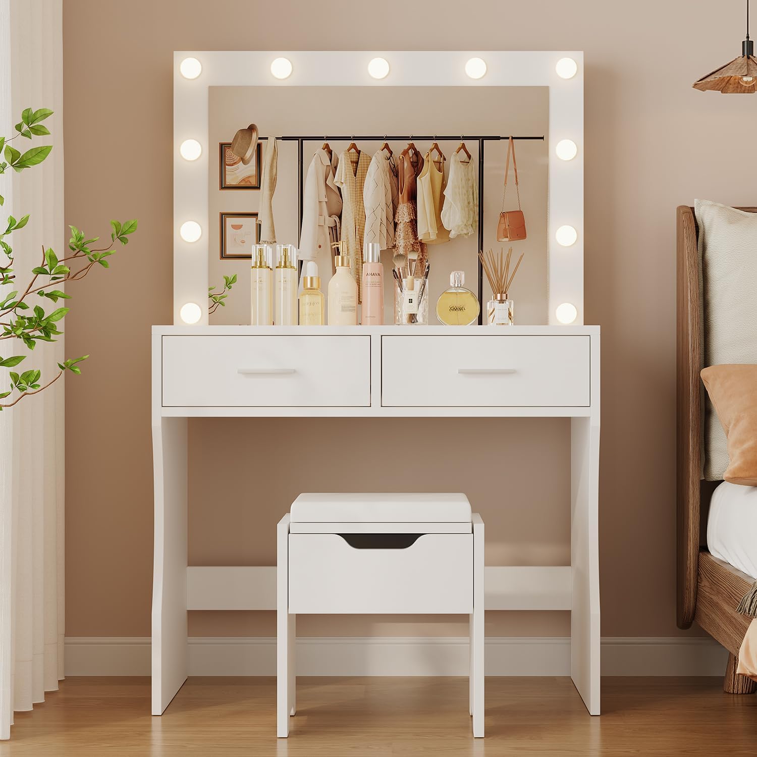 BUREAU SPACIEUX : Cette coiffeuse dispose d’un bureau spacieux de 40 cm, les produits de maquillage et de soin sont placés au hasard, l’accès est plus pratique et sans souci, le maquillage est plus spacieux, sans entrave .