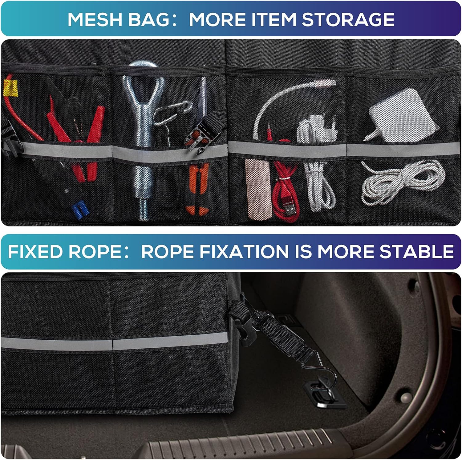 Haute qualité et stabilité – L’extérieur et le fond de la organisateur de coffre de voiture sont faits de plaques de soutiens PP de 1.5 mm et de coton, ce qui permet de supporter le corps de la sacoche de voiture, la fixer solidement et faire en sorte de ne pas affaisser ou endommager le fond dû à trop d’objets