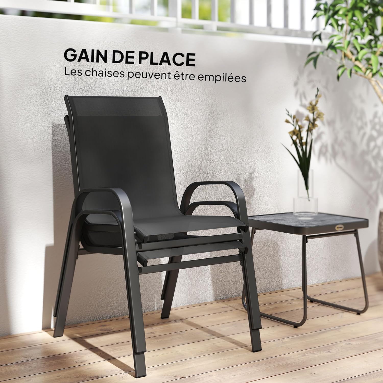 GAIN DE PLACE : Lorsque les chaises ne sont pas utilisées, elles peuvent être empilées pour gagner de l’espace. De plus, elles sont légères et peuvent être facilement déplacées et rangées.