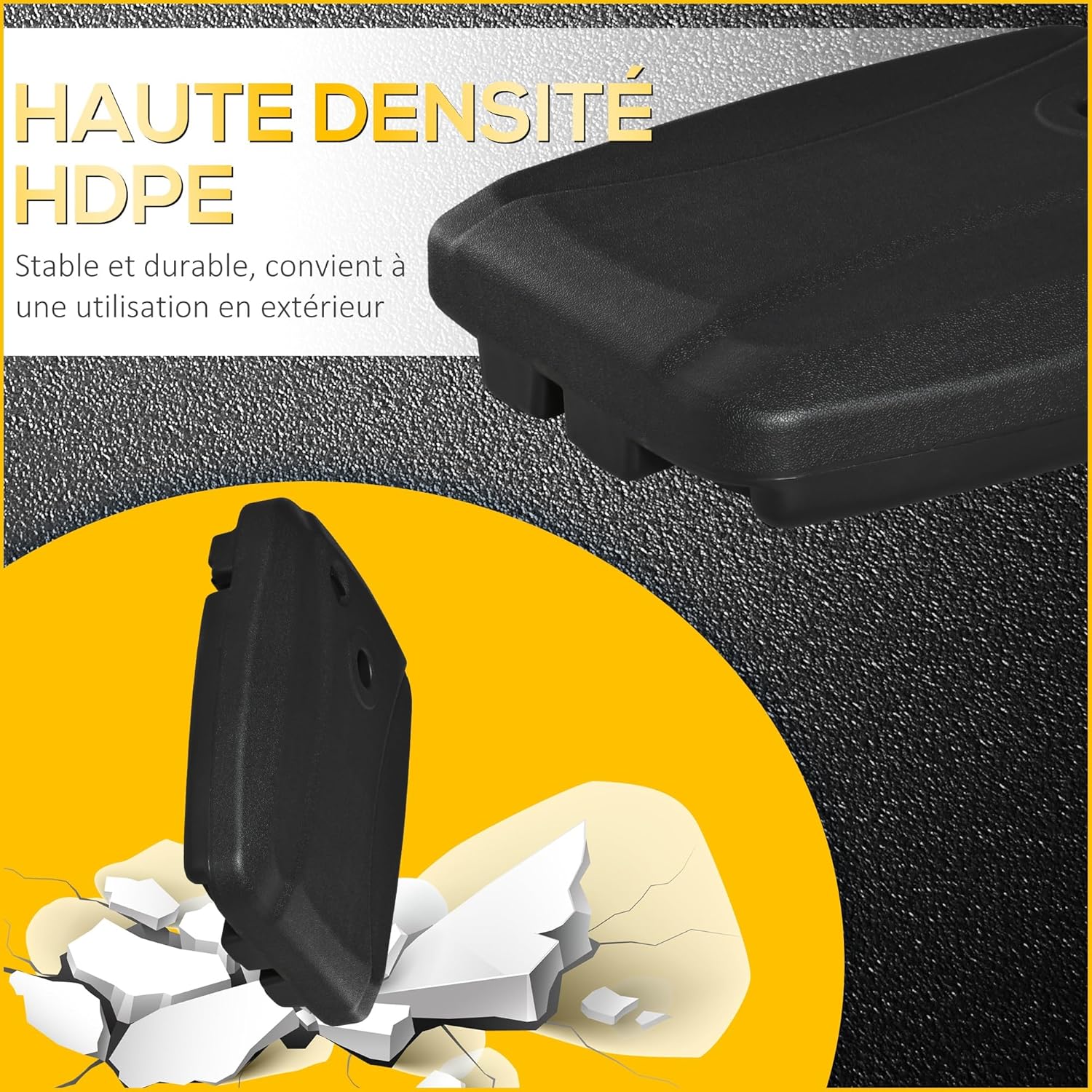 MATÉRIAUX ROBUSTES : Construit en plastique HDPE résistant et imperméable, ce pied de parasol assure une stabilité et durabilité accrues, parfait pour les espaces extérieurs.