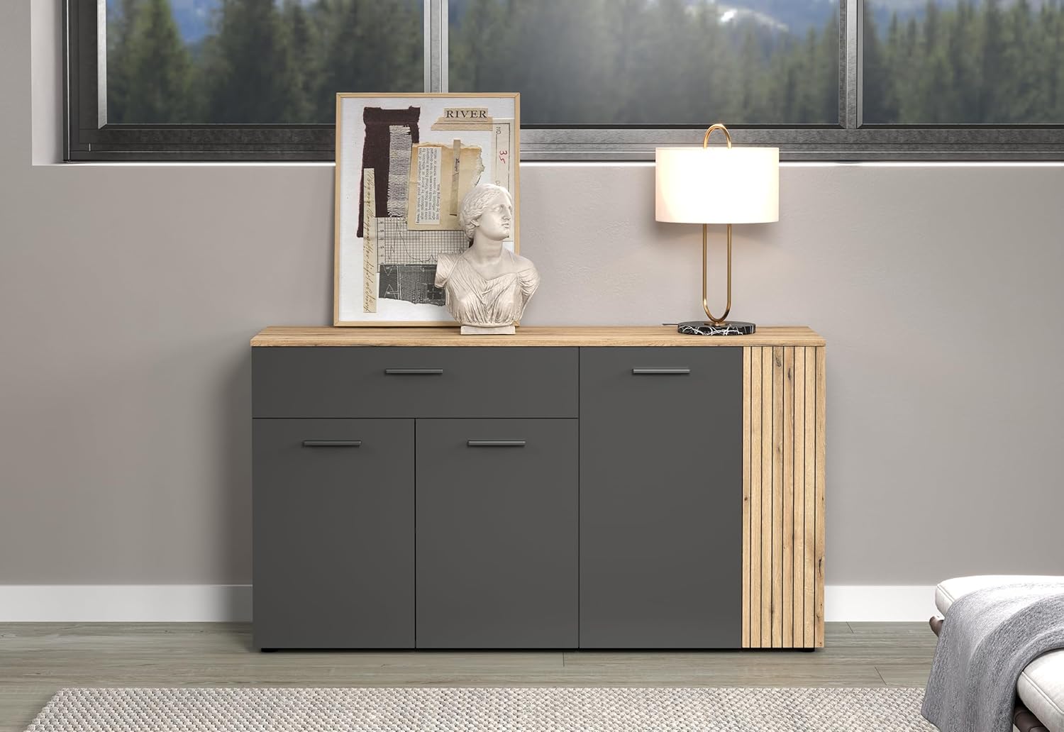 trendteam smart living – armoire de rangement – salon – Esteban – dimensions d’assemblage (LxHxP) 150 x 83 x 42 cm – couleur anthracite avec chêne Coast Evoke – aspect rainuré – 231287484
