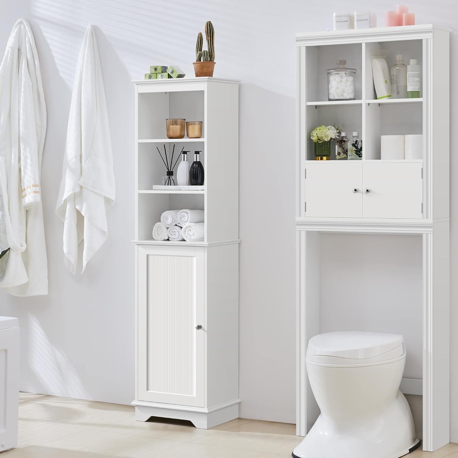 【Organisation optimale】Notre colonne de salle de bain offre un vaste espace, avec trois niveaux ouverts pour les articles fréquemment utilisés. Le placard inférieur, équipée d’une porte et d’une étagère réglable en trois positions de hauteur.