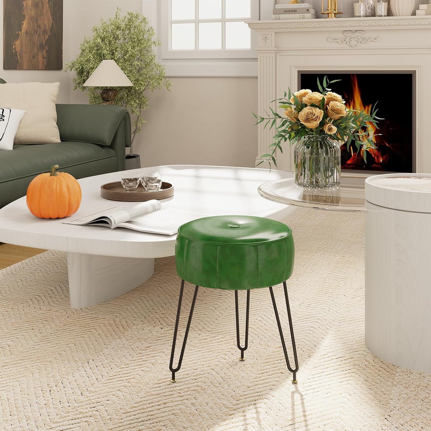 En forme de citrouille: Tabouret de maquillage présente une jolie forme de citrouille avec une tournure unique. Ses lignes arrondies et sa forme vivante confèrent espièglerie et vitalité à la zone de maquillage.
