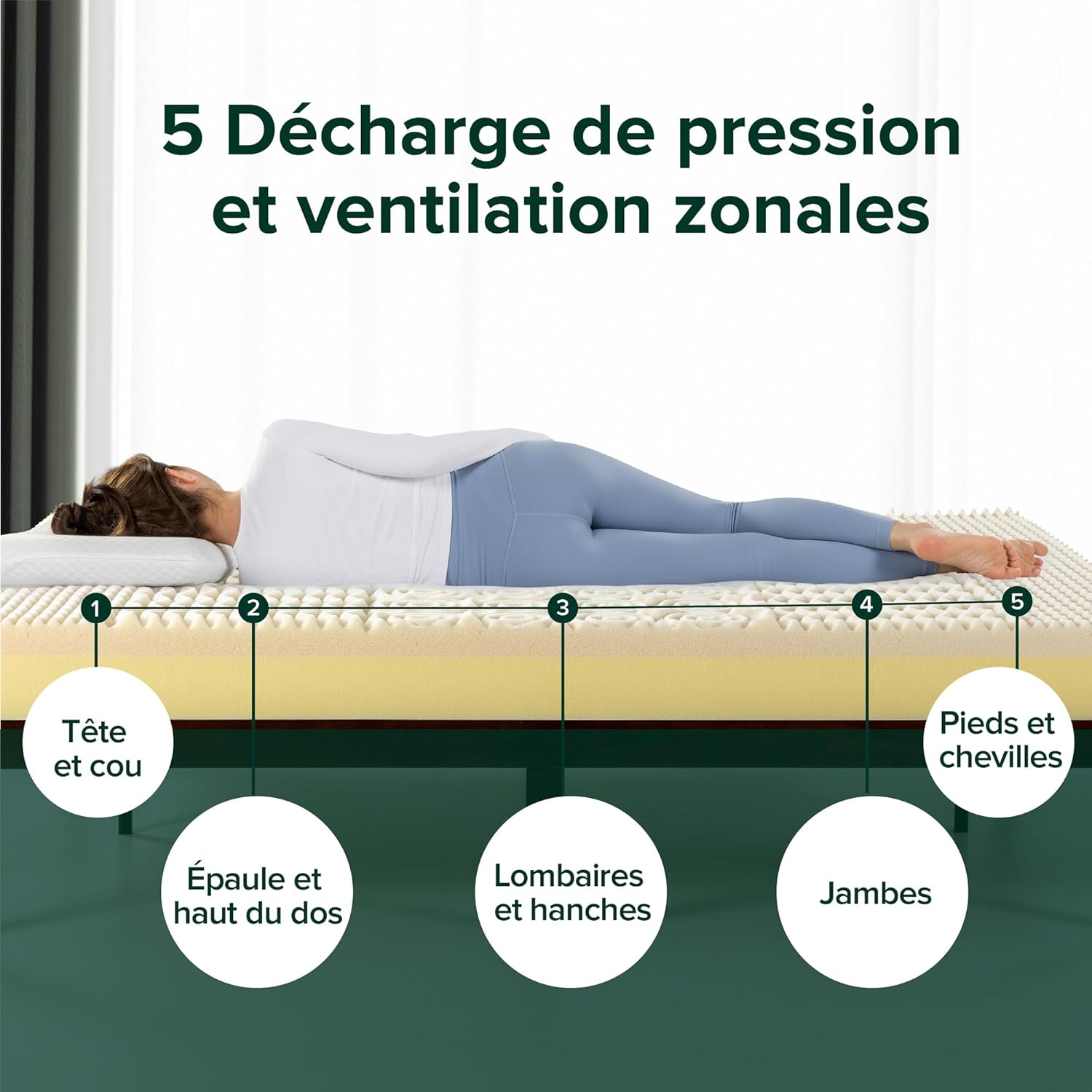 LONGUE DURÉE DE VIE – Le matelas présente les mêmes zones sur les deux faces, ce qui vous permet de le retourner de temps à autre pour prolonger sa durée de vie