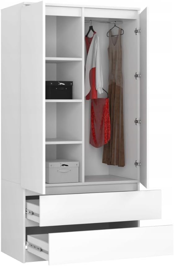 Un design bien pensé : avec une tringle à vêtements, 2 tiroirs et 4 étagères, cette armoire est idéale pour organiser vos vêtements. Deux tiroirs spacieux permettent de ranger toutes vos affaires.